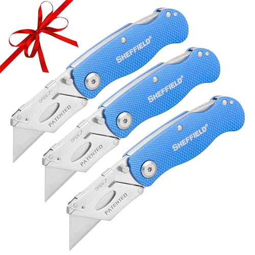 {"about_product": ["Quick Blade Change: Patented mechanism enables effortless blade replacements using standard box cutter blades. The ease of changing blades on the go, ensuring uninterrupted workflow for cutting cardboard and drywall.", "Lock Back Safety: Lock Back release secures the folding knife blade during use, providing confidence and safety. Users appreciate the firm lock that prevents accidents, making it ideal razor blade for precision cutting.", "Lightweight Aluminum Handle: Aluminum handle with textured grip offers comfort and control, reducing hand fatigue during use. The lightweight design, perfect for professionals who need a reliable drywall cutter.", "Compact and Portable: At just 4 ounces and 3.5 inches folded, this cardboard cutter fits easily in your pocket. Our utility knives allow convenient carry on the job, from construction sites to warehouse tasks.", "Built to Last: Sheffield's Lifetime Warranty backs the durability and reliability of this drywall knife, ensuring long-term satisfaction. The quality makes our razor knife a dependable tool as a carpet cutter, box opener, and hobby knife."], "product_description": "Product Description One-hand opening lockback utility knife in blue. This innovative and useful tool combines the best features of a lockback knife with a utility knife. The blade is changed easily using patented snap lock and sliding mechanism. From the Manufacturer Founded in 1919, Great Neck Saw Manufacturer has been manufacturing and marketing hand tools for over 80 years to professionals and DIY-ers worldwide. Great Neck is committed to providing the finest quality products at a competitive price. This innovative and useful tool combines the best features of a lock back knife with a utility knife. Features a sturdy aluminum handle. fold out blade housing. The blade is changed easily using patented snap lock and sliding mechanism. Uses standard utility blades.", "product_information": {"UPC": "801593183053", "ASIN": "B0001WBSK8", "Size": "12113", "Brand": "Sheffield", "Color": "Blue", "Shape": "Other", "Style": "Standard", "Usage": "Amateur, Professional", "Material": "Aluminum", "Blade Edge": "Straight", "Item Length": "6 Inches", "Item Weight": "5 ounces", "Part Number": "12113", "Manufacturer": "GreatNeck Saw", "Power Source": "hand_powered", "Blade Material": "Alloy Steel", "Handle Material": "Aluminum", "Number Of Pieces": "1", "Special Features": "Lightweight, Locking Blade, Pocket Clip, Snap Closure, Sturdy", "Best Sellers Rank": "#13,643 in Tools & Home Improvement (See Top 100 in Tools & Home Improvement) #90 in Utility Knives", "Item model number": "12113", "Batteries Included?": "No", "Batteries Required?": "No", "Included Components": "12113", "Date First Available": "July 25, 2005", "Warranty Description": "Sheffield Limited Lifetime", "Item Package Quantity": "1", "Handle/Lever Placement": "End of the knife", "Is Discontinued By Manufacturer": "No", "Global Trade Identification Number": "00076812121134, 00801593183053"}, "product_details": {"UPC": "801593183053", "Brand": "Sheffield", "Color": "Blue", "Style": "Standard", "Material": "Aluminum", "Item Length": "6 Inches", "Item Weight": "4.96 ounces", "Manufacturer": "GreatNeck Saw", "Blade Material": "Alloy Steel", "Handle Material": "Aluminum"}}