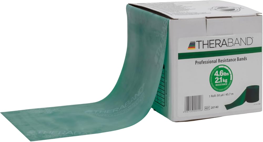 {"about_product": ["HEAVY RESISTANCE FOR FULL-BODY TRAINING: Designed for upper and lower body workouts; ideal for strength building, flexibility, and mobility routines at home or in clinical settings", "CUT TO ANY LENGTH FOR CUSTOM FIT: 50-yard latex roll lets you trim precise lengths for individual workouts, body sizes, or therapy needs; ideal for clinics, group classes, or home gyms", "PORTABLE & EASY TO USE ANYWHERE: Lightweight and compact for workouts at home, gym, office, or while traveling; perfect for Pilates, rehab sessions, or stretching on-the-go", "LEVEL 3 GREEN – HEAVY RESISTANCE: Green bands are the 4th of 8 resistance levels in the THERABAND system; 4.6 lbs of resistance at 100% elongation and 6.7 lbs at 200%; 25% more resistance than the previous level; 50 yards long by 5 inches wide", "DURABLE DESIGN FROM TRUSTED BRAND: Professional-grade elasticity built for repeated use; color-coded for easy resistance tracking; THERABAND is trusted by physical therapists and trainers alike"], "product_description": "", "product_information": {"UPC": "874532014060 087453201406", "ASIN": "B00066D67C", "Size": "50 Yard", "Brand": "THERABAND", "Color": "Level 3 / Heavy - Green", "Sport": "Strength Training", "Style": "Latex", "Material": "Natural Rubber", "Brand Name": "THERABAND", "Model Name": "Latex Resistance Band", "Unit Count": "1 Count", "Part Number": "20140", "Manufacturer": "THERABAND", "Tension Level": "Heavy", "Item Thickness": "5 Inches", "Package Weight": "1.46 Kilograms", "Number of Items": "1", "Special Feature": "Adjustable", "Suggested Users": "unisex-adult", "Best Sellers Rank": "#7,708 in Sports & Outdoors (See Top 100 in Sports & Outdoors) #88 in Resistance Bands", "Product Dimensions": "1800\"L x 5\"W", "Included Components": "Handle", "Date First Available": "May 8, 2005", "Item Dimensions LxWxH": "5.35 x 5.39 x 5.63 inches", "Number of Resistance Levels": "1", "Recommended Uses For Product": "Workout", "Item Package Dimensions L x W x H": "5.59 x 5.59 x 5.55 inches", "Global Trade Identification Number": "00087453201406"}, "product_details": {"Brand": "THERABAND", "Color": "Level 3 / Heavy - Green", "Sport": "Strength Training", "Material": "Natural Rubber", "Included Components": "Handle"}}