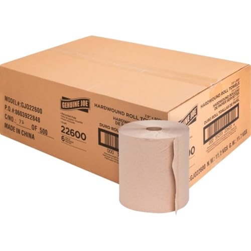 {"about_product": ["High-capacity provides storage space, maintenance and labor savings", "Compatible with most universal dispensers", "Perfect solution for high-traffic restrooms", "100% recycled content", "Size: 7-7/8\" x 800' (1-7/8\" core)"], "product_description": "Hardwound Roll Towels offer a high capacity to provide storage space, maintenance and labor savings vs. folded towels. Heavily embossed design provides a better feel and aid in absorbency. 2\" core size is compatible with most universal dispensers. Perfect towel solution for high-traffic restrooms. Towels are made with a high percentage of recycled material.", "product_information": {"ASIN": "B001C8CK4I", "Size": "6 Count (Pack of 1)", "Brand": "Genuine Joe", "Color": "White", "Item Weight": "14 pounds", "Manufacturer": "Genuine Joe", "Material Type": "Paper", "Number of Items": "6", "Best Sellers Rank": "#1,510 in Industrial & Scientific (See Top 100 in Industrial & Scientific) #12 in Bulk Quantity Paper Towels #42 in Paper Towels", "Item model number": "GJO22700", "Date First Available": "November 14, 2006", "Manufacturer Part Number": "GJO22700", "Is Discontinued By Manufacturer": "No", "Total Recycled Content Percentage": "100"}, "product_details": {"Brand": "Genuine Joe", "Ply Rating": "1-Ply", "Unit Count": "6.0 Count", "Sheet Count": "800", "Special Feature": "Absorbency"}}