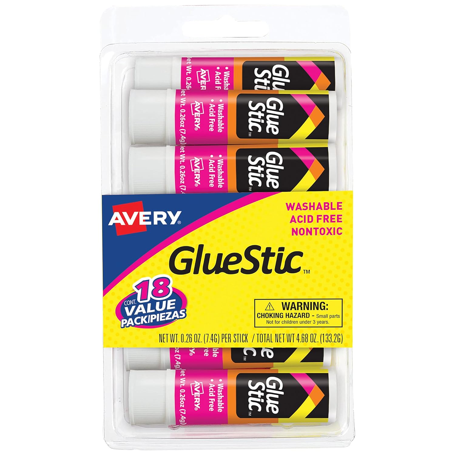 {"about_product": ["Glue stick goes on smoothly minimizing any clumping or wrinkling", "White craft glue bonds properly to a variety of surfaces, including paper, photos, cardboard, foam board, fabric, glass and more", "No need to worry about messy residue; strong adhesive glue washes easily off hands and clothing", "Safe for children; craft glue sticks are nontoxic, acid-free, ACMI certified and conform to ASTM D 4236", "All-purpose glue sticks are perfect for school projects, arts & crafts, scrapbooks and more"], "product_description": "Confidently apply adhesive to every spot that needs it with Avery Glue Stics. Simply lift the cap and twist the base for easy application. White glue goes on smoothly, minimizing any clumping or wrinkling, and dries clear. You'll get a strong hold with a gentle touch with the permanent glue that bonds securely to a variety of materials, but washes easily off hands and clothing. Not only are these permanent glue sticks washable, they are also acid-free and nontoxic, making them perfect glue for kids, glue sticks for crafts and school glue sticks. The longer cap also makes it easier for little hands to grasp and open. Whether it's for a school project, arts & crafts, 3d printing or for a slime kit to make slime, Avery Glue Stics are versatile and can get the job done. White glue bonds to paper, photos, cardboard, foam board, fabric, glass and more. These craft glue sticks are also great during the holidays. Seamlessly put the last finishing touches on your gift wrap or seal the envelope to your custom greeting card with one swipe of your glue stick. All Avery Glue Stics are nontoxic, photo-safe, ACMI certified and conform to ASTM D 4236. Item comes with 18 white glue sticks.", "product_information": {"ASIN": "B001IZEZYS", "Department": "Pens & Desk Supplies", "Manufacturer": "Avery", "Customer Reviews": "4.7 4.7 out of 5 stars \n\n (394)", "Best Sellers Rank": "#44,792 in Arts, Crafts & Sewing (See Top 100 in Arts, Crafts & Sewing) #82 in Glue Sticks #296 in Art Glues", "Item model number": "98089", "Product Dimensions": "6.63 x 3.69 x 2.38 inches; 10.4 ounces", "Date First Available": "November 17, 2006", "Is Discontinued By Manufacturer": "No"}, "product_details": {"Brand": "Avery", "Material": "Paper", "Item Form": "Stick", "Special Feature": "Strong, Washable", "Specific Uses For Product": "Art, School, Craft, Wall Art, Fabric"}}