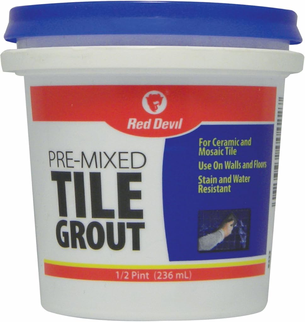 {"about_product": ["PROFESSIONAL RESULTS WITH DIY EASE: Achieve expert-level tile grouting without the hassle - perfect for both new installations and repairs", "SUPERIOR DURABILITY: Offers long-lasting performance, maintaining the integrity of your ceramic and mosaic tile projects", "VERSATILE APPLICATION: Excellent adhesion to tile, masonry, wood, and wallboard - ideal for both wall and floor use", "WATER CLEAN UP: Cleans up easily with soap and water", "MADE IN THE USA: Proudly manufactured in Pryor, OK, ensuring high-quality standards"], "product_description": "Upgrade your tiling projects with Red Devil's Pre-Mixed Tile Grout, the perfect solution for both DIY enthusiasts and professionals. Formulated with premium acrylic latex, our grout provides enhanced durability, water protection, and superior performance. The user-friendly consistency ensures smooth application on ceramic and mosaic tiles, making it ideal for walls, floors, and even repairs. This versatile grout adheres excellently to tile, masonry, wood, and wallboard, suitable for both new and existing installations. VOC compliant and made in the USA, our pre-mixed grout combines quality, convenience, and environmental responsibility. Experience the Red Devil difference – where professional results meet DIY simplicity.", "product_information": {"UPC": "075339004227", "ASIN": "B003MYMFAE", "Size": "8 fl oz", "Brand": "Red Devil", "Color": "White", "Shape": "Rectangular", "Style": "1 - Pack", "Finish": "Brushed", "Pattern": "Solid", "Material": "Acrylic", "Item Form": "Paste", "Unit Count": "1.0 Count", "Item Weight": "1.6 ounces", "Part Number": "0422", "Manufacturer": "Red Devil Inc.", "Power Source": "Hand_powered", "Number of Items": "1", "Best Sellers Rank": "#1,439 in Tools & Home Improvement (See Top 100 in Tools & Home Improvement) #1 in Tile Grout", "Item model number": "0422", "Product Dimensions": "3 x 3 x 3.25 inches", "Batteries Included?": "No", "Batteries Required?": "No", "Date First Available": "April 27, 2012", "Item Package Quantity": "1", "Surface Recommendation": "Tile", "Water Resistance Level": "Water Resistant", "Item dimensions L x W x H": "3 x 3 x 3.25 inches", "Global Trade Identification Number": "00075339004227"}, "product_details": {"Brand": "Red Devil", "Style": "1 - Pack", "Material": "Acrylic", "Item Weight": "1.6 ounces", "Item dimensions L x W x H": "3 x 3 x 3.25 inches"}}
