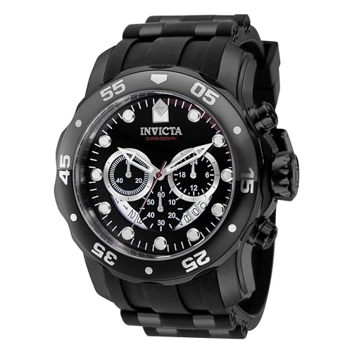 {"about_product": ["Stainless steel case 48mm diameter x 16.8mm thick; Black dial; Luminous hands and hour markers", "Japanese quartz movement, VD53 Caliber; Assembled in Japan; SR920SW battery included; Watch weight: 185 grams", "Stainless steel and black silicone band, 220mm L x 26mm W; Buckle clasp", "Flame Fusion crystal; Push/pull crown; Uni-directional stainless steel bezel with black top bezel ring; Functional Subdials: 60min, 60sec, 24hr; 100 meter water resistant: Suitable for recreational surfing, swimming, snorkeling, sailing and water sports. Not suitable for diving.", "Function meets fashion in this Invicta watch, which features sophisticated design details such as a rotating date calendar and black sunray dial with silver-tone hands and markers.", "Protective mineral crystal dial window"], "product_description": "", "product_information": {"ASIN": "B003MYUQKA", "Batteries": "1 CR2 batteries required. (included)", "Department": "mens", "Manufacturer": "Invicta", "Customer Reviews": "4.7 4.7 out of 5 stars \n\n (15,315)", "Product Warranty": "For warranty information about this product, please click here", "Best Sellers Rank": "#27,147 in Clothing, Shoes & Jewelry (See Top 100 in Clothing, Shoes & Jewelry) #96 in Men's Wrist Watches", "Item model number": "6977", "Product Dimensions": "0.59 x 0.59 x 0.59 inches; 8.82 ounces", "Date First Available": "May 17, 2010", "Is Discontinued By Manufacturer": "No"}, "product_details": {"Material": "Polyurethane"}}