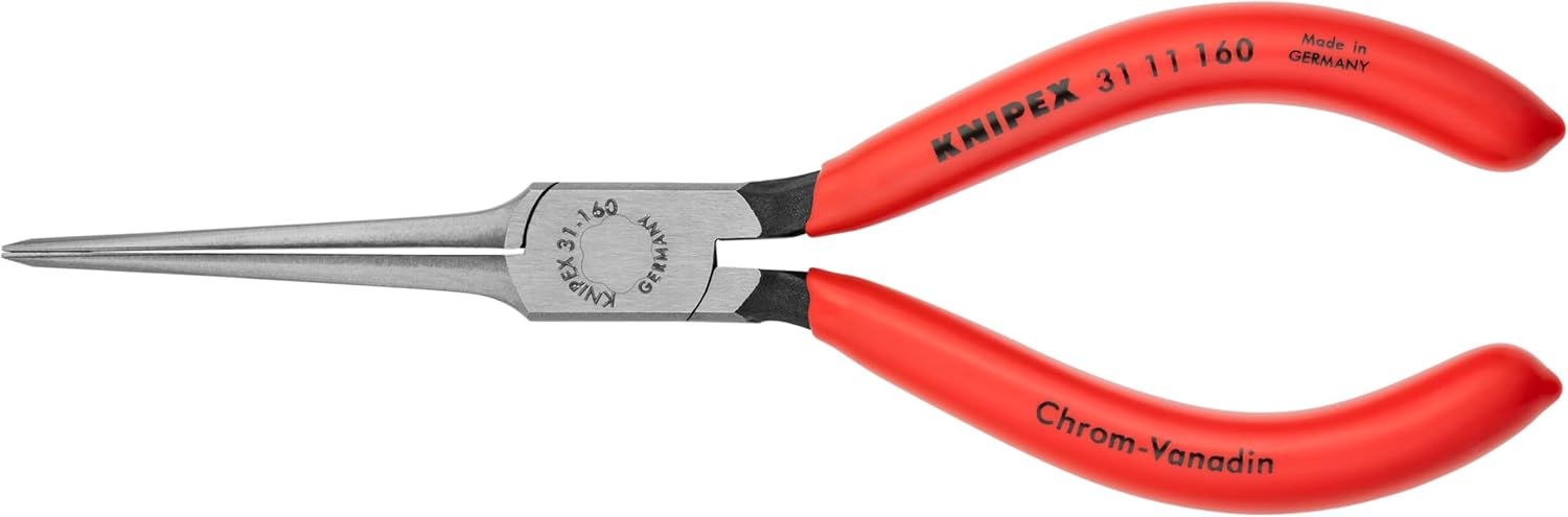 {"about_product": ["Precision Grade Performance Tools", "The Number 1 Choice Of Tradesman Worldwide", "Comfortable In Use And Quality Assured Design", "Fit To Match The Needs In The Shop, At Home Or In The Service Field", "Each Tool Is Proven And Tested For Durability And Function In Real World Use And Conditions"], "product_description": "Product Description Made In Wuppertal-Cronenberg, Germany. In Addition To Quality, Innovation And Performance, Other Important Cornerstones Are Sustainable Actions And Value-Guided Orientation. From the Manufacturer A tool designed with your hand in mind. Even more power for easier working! KNIPEX quality-engineered and manufactured in Germany. If you’re looking for precision pliers for very exact assembly, bending and adjusting work, KNIPEX’s Needle Nose Pliers are the perfect tool for you to use. With extra long jaws at a length of 55 mm, these pliers easily reach where other pliers can’t and are perfect for working in confined areas. Smooth gripping surfaces ensure a tight and comfortable grip. KNIPEX specializes in the development and production of high-quality pliers and is Europe's leading manufacturer of these products. It all started back in 1882 when C. Gustav Putsch set up his own forge shop in Cronenberg (now a suburb of Wuppertal). We are an independent fourth-generation family company. KNIPEX concentrates our knowledge and expertise on pliers. This is the only way to justify our claim that we are the best supplier in terms of quality, innovation and efficiency. Our success is assured by 800 qualified employees and we attach the greatest importance to their basic and advanced training.", "product_information": {"UPC": "843221001643", "ASIN": "B003RWS9EW", "Size": "6.25", "Brand": "KNIPEX", "Color": "Multi", "Shape": "Rectangular", "Style": "Pliers", "Finish": "Brushed", "Pattern": "Solid", "Material": "Blend", "Grip Type": "Ergonomic", "Item Weight": "0.8 ounces", "Part Number": "31 11 160", "Manufacturer": "Knipex Tools", "Power Source": "Hand-Powered", "Cutting Width": "55 Millimeters", "Handle Material": "Plastic", "Number Of Pieces": "1", "Best Sellers Rank": "#12,286 in Tools & Home Improvement (See Top 100 in Tools & Home Improvement) #18 in Needle-Nose Pliers", "Item model number": "3111160", "Specification Met": "DIN ISO 5745, RoHS", "Product Dimensions": "7\"L x 1.9\"W", "Batteries Included?": "No", "Batteries Required?": "No", "Included Components": "Knipex - 31 11 160", "Date First Available": "June 28, 2010", "Warranty Description": "Workmanship and Materials", "Item Package Quantity": "1", "Specific Uses For Product": "Service Field", "Is Discontinued By Manufacturer": "No", "Global Trade Identification Number": "00843221001643"}, "product_details": {"Brand": "KNIPEX", "Color": "Multi", "Material": "Blend", "Grip Type": "Ergonomic", "Item Weight": "0.05 Pounds", "Cutting Width": "55 Millimeters", "Handle Material": "Plastic", "Specification Met": "DIN ISO 5745, RoHS", "Product Dimensions": "7"L x 1.9"W", "Specific Uses For Product": "Service Field"}}