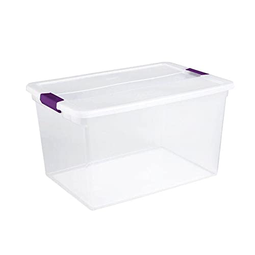 {"about_product": ["Overall Dimensions: Assembled dimensions of this 60 Qt ClearView Latch Box are 34 5/8 inches long, 18 3/4 inches wide, and 7 inches high, offering generous space for everyday household storage", "Versatile Everyday Storage: Ideal for organizing common household items, this storage box offers a practical solution for keeping closets, bedrooms, and shelving areas tidy and clutter-free", "Clear Design for Quick Visibility: The transparent base and lid make it easy to view the contents from any angle, so you can quickly identify what’s inside without opening the box", "Secure Latching Lid: The colorful sweet plum latches firmly snap the lid to the base, keeping contents safely contained and protected from dust and debris, ensuring items stay clean and in place", "7 Useful Sizes: The ClearView Latch Boxes from Sterilite offers seven different sizes made with durable, BPA-free, and phthalate-free materials for reliable everyday storage around your home"], "product_description": null, "product_information": {"UPC": "787683511480 193802083576 073149761170", "ASIN": "B0042G1P7K", "Size": "60 Quart", "Brand": "Sterilite", "Color": "Sweet Plum", "Shape": "Rectangular", "Style": "4 Pack", "Pattern": "Box", "Capacity": "60 Quarts", "Material": "Plastic", "Unit Count": "4.0 Count", "Item Weight": "5.75 pounds", "Part Number": "17611704", "Closure Type": "Latch", "Manufacturer": "Sterilite-Massillon, OH", "Storage Volume": "60 Quarts", "Number of Items": "4", "Special Feature": "Wheeled", "Number Of Pieces": "4", "Special Features": "Wheeled", "Best Sellers Rank": "#8,912 in Home & Kitchen (See Top 100 in Home & Kitchen) #6 in Storage Boxes #12 in Lidded Home Storage Bins", "Item model number": "1761", "Opening Mechanism": "latch,latch™,slide", "Product Dimensions": "34.63\"L x 7\"W x 18.75\"H", "Batteries Included?": "No", "Batteries Required?": "No", "Included Components": "60 Qt ClearView Latch Wheeled Storage Box", "Date First Available": "January 6, 2012", "Item Package Quantity": "4", "Number of Compartments": "1", "Water Resistance Level": "Waterproof", "Recommended Uses For Product": "Clothes Storage", "Is Discontinued By Manufacturer": "No", "Global Trade Identification Number": "10073149761177"}, "product_details": {"Brand": "Sterilite", "Color": "Sweet Plum", "Style": "4 Pack", "Material": "Plastic", "Special Feature": "Wheeled"}}