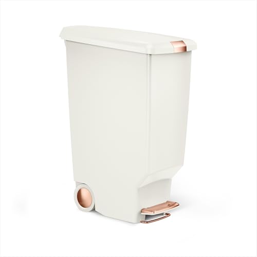 {"about_product": ["SILENT CLOSE LID - simplehuman's patented lid shox technology controls the motion of the lid for a slow, silent close.", "LOCK THE LID SHUT - A slide lock securely locks the lid to help keep pets and curious children from getting into the trash.", "SLIM, SPACE-SAVING SHAPE - Designed to make the most of tight spaces.", "STAY-OPEN LID - The lid stays open for as long as you like — perfect for longer chores.", "BUILT-IN WHEELS - Built-in wheels make the can easy to move.", "CUSTOM FIT LINERS - simplehuman's code K liners are designed to fit this can perfectly so they don't slip. Extra-thick plastic and double-seam construction prevent rips and tears."], "product_description": "Product Description simplehuman's slim plastic step can has a space-efficient shape that fits perfectly in tight spaces, like between cabinets. The strong steel pedal is designed to last, and our patented lid shox technology ensures a smooth, silent close every time. A slide lock helps keep trash in and pets and curious children out. The code K liner fits this can perfectly — no bunching or slipping for a cleaner trash experience. Brand Story We design tools that help people become more efficient at home.\n\n Day to day life has room for improvement. That's the basic thinking behind simplehuman. Many activities in our daily routine are so basic that we take them for granted. Washing our hands, cleaning up after a meal, grooming and prepping our appearance. Through innovation and new technologies, we find ways to streamline these simple tasks. We call our products tools for efficient living.", "product_information": {"UPC": "838810012766 838810005782 636501848812", "ASIN": "B004L9L42O", "Size": "40 Liter", "Brand": "simplehuman", "Color": "Black", "Shape": "Rectangular", "Capacity": "40 Liters", "Material": "Plastic", "With Lid": "Yes", "Room Type": "Kitchen", "Unit Count": "1.0 Count", "Finish Type": "Painted", "Item Weight": "6.16 pounds", "Finish types": "Painted", "Manufacturer": "simplehuman", "Special Feature": "Code K Custom Fit Liner, Pet Proof Lid Lock, Slim, Strong Steel Pedal", "Number of pieces": "1", "Assembly required": "No", "Best Sellers Rank": "#14,621 in Home & Kitchen (See Top 100 in Home & Kitchen) #30 in Kitchen Waste Bins", "Item model number": "CW1361", "Opening Mechanism": "Step-On", "Batteries required": "No", "Product Dimensions": "18.6\"L x 10.1\"W x 24.9\"H", "Included Components": "40 Liter Plastic Trash Can", "Warranty Description": "5-year.", "Recommended Uses For Product": "Kitchen", "Is Discontinued By Manufacturer": "No", "Global Trade Identification Number": "00838810005782, 00838810012766"}, "product_details": {"Brand": "simplehuman", "Color": "Black", "Shape": "Rectangular", "Capacity": "40 Liters", "Material": "Plastic", "Room Type": "Kitchen", "Finish Type": "Painted", "Special Feature": "Code K Custom Fit Liner, Pet Proof Lid Lock, Slim, Strong Steel Pedal", "Opening Mechanism": "Step-On", "Recommended Uses For Product": "Kitchen"}}