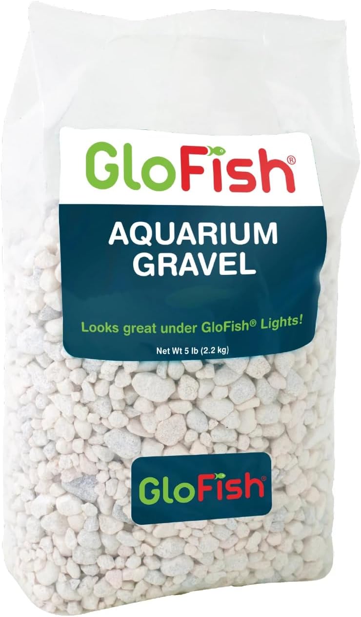 {"about_product": ["AQUARIUM GRAVEL: GloFish Aquarium Gravel creates a colorful base for all your GloFish ornaments.", "RANGE OF COLORS: Choose pink, green, white, black with fluorescent highlights, or a mix of colors.", "BASK IN THE GLOW: Fluorescent-accented gravel stands out under GloFish blue LED lights.", "HIGHLIGHTS YOUR TANK: Use as a substrate or accent, along with GloFish plants and ornaments (sold separately).", "EXPERIENCE THE GLO: GloFish fluorescent fish and products create a complete underwater fluorescent experience."], "product_description": "GloFish® aquarium gravel and gravel accents are the perfect way to quickly convert any aquarium into an exquisite GloFish environment. These brightly colored gravels are designed to help create an underwater paradise for your fluorescent fish and stand out beautifully under blue LED lights. Your friends and family will love watching your GloFish aquarium come alive under GloFish lighting. GloFish® Aquarium Gravel sets the stage for a unique aquatic experience. This gravel not only provides a base for all your GloFish ornaments and plants, but it also looks magical under your GloFish aquarium’s blue LED lights. GloFish Aquarium Gravel is available in a range of colors. Rinse gravel before using. For the best GloFish viewing experience, try using a blue wavelength light, like GloFish LED lighting, to give a uniquely fluorescent look, particularly in low or nighttime lighting. Traditional white aquarium lights (such as fluorescent or halogen lights) work well for daytime use. GloFish fluorescent fish absorb light and then re-emit it, so they will appear brighter and more vibrant as the amount of light is increased. GloFish® fluorescent fish are born brilliant! They get their natural, vibrant color from their parents and are not injected, painted or dyed. Enhanced by a full range of aquarium kits, lighting, décor and accessories, GloFish products create a complete underwater fluorescent experience that appeals to all ages and levels of expertise.", "product_information": {"ASIN": "B00DCVPL4E", "Size": "5 pounds", "Color": "White Frost", "Style": "Modern", "Material": "gravel", "Brand Name": "GloFish", "Model Name": "GloFish Aquarium Gravel 5 Pounds, White, Complements Tanks", "Item Weight": "5 Pounds", "Manufacturer": "GloFish", "Number of Items": "1", "Item model number": "29022", "Included Components": "PHL309307", "Date First Available": "January 5, 2014", "Warranty Description": "PHL309307", "Age Range Description": "Adolescent", "Item Dimensions LxWxH": "4 x 5 x 9 inches", "Target Audience Keyword": "Fish, algae-eaters, fish, mollusks, octopuses, rays, snails", "Specific Uses for Product": "Aquarium use (GloFish compatible)", "Item Package Dimensions L x W x H": "9.2 x 6.32 x 2.36 inches"}, "product_details": {"Brand": "GloFish", "Color": "White Frost", "Shape": "Rectangular", "Style": "Modern", "Material": "gravel", "Item Weight": "5 Pounds", "Tank Volume": "5 Gallons", "Special Feature": "Lightweight", "Included Components": "PHL309307", "Specific Uses For Product": "Aquarium use (GloFish compatible)"}}