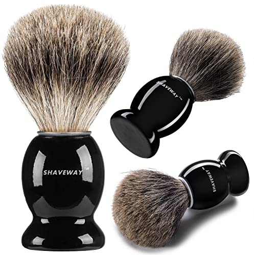 {"about_product": ["100% Badger hair bristles.", "Gently exfoliates the skin", "Creates a perfect rich lather--ONLY ONE BRUSH IS INCLUDED", "Brings water to the face for the ultimate true wet shave", "Fits Perfectly in the \"Deluxe Chrome Razor and Brush Stand\" PLEASE NOTE, that as with all genuine badger hair brushes, slight shedding may occur during the first few times in use"], "product_description": "A Deluxe Badger Shaving Brush For All GentlemenAre you looking for a 100% Badger Hair Bristles Quality Shaving Brush that would turn your shaving into a luxurious barber-like experience?Treat Yourself To The Luxurious Comfort Of The Best Badger Shaving Brush By ShavewayProduce rich shave lather and give in to a rejuvenating shaving experience from the convenience of your home. Our excellent shaving brush, made exclusively from 100% natural soft badger hair will help you save time and money on expensive barbers! Opt for the convenience and precision of having your facial hair groomed in no time with a sturdy classic shaving brush that will gently exfoliate your skin, generating the creation of new skin cells and offering your face unique sleek, radiant looks!Universal Use: The Perfect Men’s Shaving Product For All RazorsManufactured from sturdy badger hair with an ergonomic handle to ensure firm grip, our shaving cream brush makes your durable buddy in your daily shaving ritual.Ideal for use with Safety Razors, Double Edge Razors, Straight Razors and all types of Shaving Razors, our traditional shaving brush with the pure natural bristles treat your wet facial hair to a peerless soft grooming!A Genuine Badger Shaving BrushAs a TOKEN of badger hair AUTHENTICITY, our shaving brush may have the natural characteristic badger smell when used for the first time- don’t worry, it will go away soon!Eliminate the moderate shedding of your original badger shaving brush by avoiding hot water- use it with warm water to keep its hair soft and shiny, for longer top shaving performance!Only One Brush is IncludedPurchase Your Very Own Shaveway Badger Shaving Brush!Click Add To Cart NOW While Supplies Last!", "product_information": {"ASIN": "B00LMTHSF8", "Manufacturer": "Shaveway", "Customer Reviews": "4.4 4.4 out of 5 stars \n\n (2,472)", "Best Sellers Rank": "#175,012 in Beauty & Personal Care (See Top 100 in Beauty & Personal Care) #75 in Shaving Brushes", "Package Dimensions": "4.8 x 1.8 x 1.6 inches; 1.59 ounces", "Date First Available": "July 9, 2014", "Is Discontinued By Manufacturer": "No"}, "product_details": {"ASIN": "B00LMTHSF8", "Manufacturer": "Shaveway", "Customer Reviews": "4.4 4.4 out of 5 stars \n\n (2,472)", "Best Sellers Rank": "#175,012 in Beauty & Personal Care (See Top 100 in Beauty & Personal Care) #75 in Shaving Brushes", "Package Dimensions": "4.8 x 1.8 x 1.6 inches; 1.59 ounces", "Date First Available": "July 9, 2014", "Is Discontinued By Manufacturer": "No"}}
