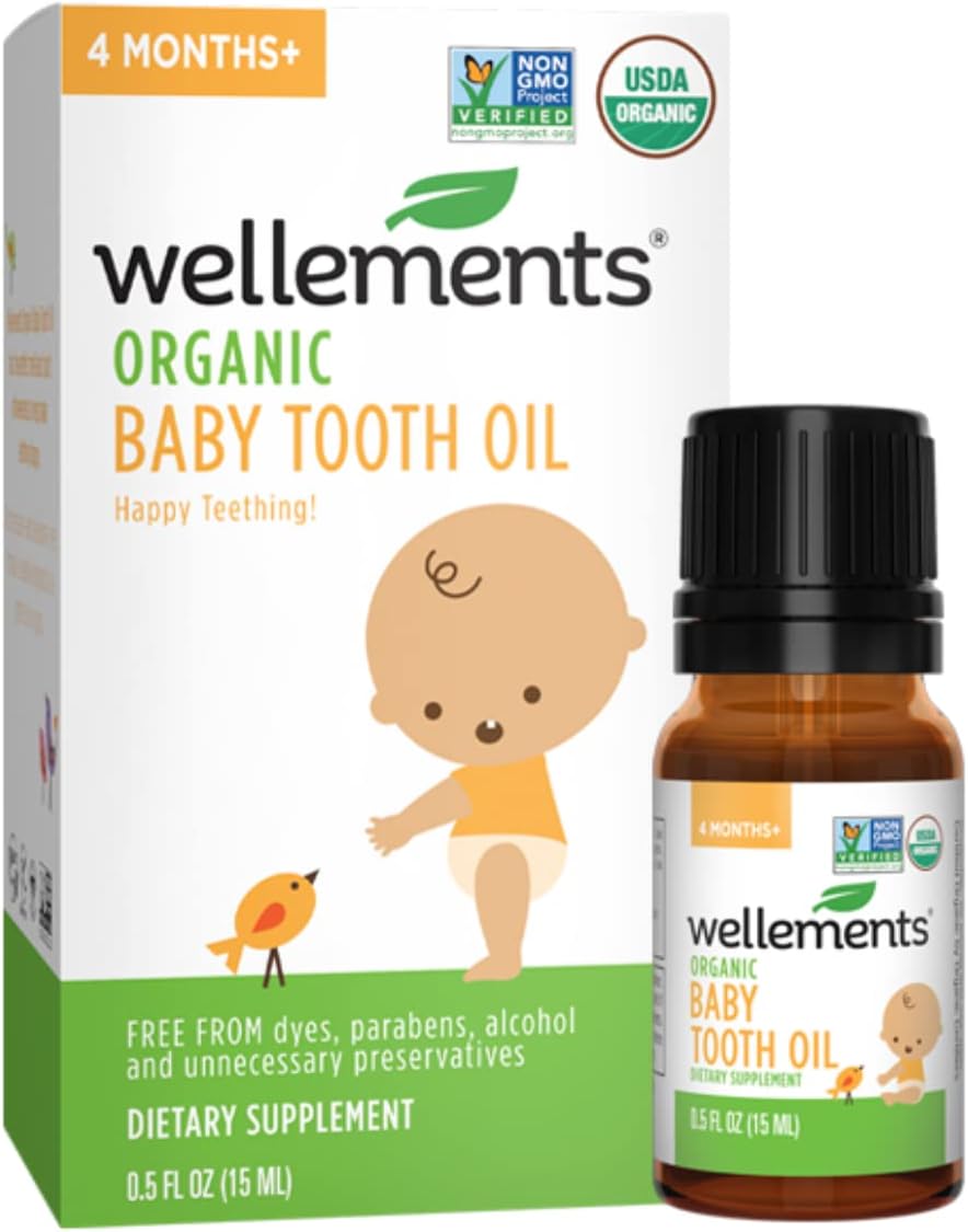 {"about_product": ["Happy Teething – Soothing organic oil to massage on tiny gums. Gently formulated for babies 4 Months +. Gently soothes tiny gums with organic essential oils of spearmint leaf, clove and olive oil.", "Gentle and Safe – Made with only safe, certified organic and non-GMO ingredients, our baby tooth oil is free from benzocaine and belladonna.", "Easy To Use – For teething babies, simply apply and massage with a clean finger directly onto gums. Starts soothing almost immediately! Reapply as needed every 1-2 hours, up to six times a day.", "Certifications – Our Organic Tooth Oil is USDA Certified Organic, Non-GMO Project Verified, Vegan Action Certified and Free From Preservatives, Artificial Colors, Artificial Flavors, Belladonna, Benzocaine, Parabens, Gluten and the Top 9 Most Common Allergens.", "Wellements – Simply a Better Tomorrow. We are parents supporting parents by providing everything we can to help. You do the hard work of parenting — we’ll do the work to ensure providing clean products for your little one is the easiest part."], "product_description": null, "product_information": {"ASIN": "B00QVENMIQ", "Manufacturer": "Wellements", "Customer Reviews": "4.6 4.6 out of 5 stars \n\n (4,481)", "Best Sellers Rank": "#1,297 in Baby (See Top 100 in Baby) #5 in Baby Teething Relief", "Item model number": "141182", "Product Dimensions": "2.75 x 1.38 x 5 inches; 0.05 ounces", "Date First Available": "January 20, 2015", "Manufacturer recommended age": "3 months and up", "Is Discontinued By Manufacturer": "No"}, "product_details": {"Brand": "Wellements", "Flavor": "Unflavored", "Item Form": "Oil", "Material Type Free": "Glycerin Free", "Age Range (Description)": "Infant"}}