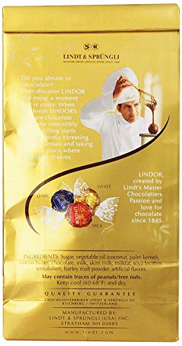{"about_product": ["15.2 oz. Bag of Lindt LINDOR Assorted Chocolate Truffles", "Five flavor assortment features Milk Chocolate, White Chocolate, Dark Chocolate, Caramel Milk Chocolate and 60% Extra Dark Chocolate", "Gourmet chocolate candy is perfect for making any moment special", "Individually wrapped truffles come in a large bag for easy sharing", "Kosher chocolate made with premium ingredients from world-renowned regions", "Experience the expert craftsmanship of Lindt Master Chocolatiers with these premium chocolate truffles"], "product_description": "Experience the most popular flavors of Lindt LINDOR assorted chocolate truffles in this classic five flavor assortment. Surprise friends and family with a chocolate candy gift, or share Lindt LINDOR chocolate truffles as a sweet, indulgent after-dinner treat. Each bag features Milk Chocolate, White Chocolate, Dark Chocolate, Caramel Milk Chocolate and 60% Extra Dark Chocolate truffles. There is something for everyone, whether you prefer the classic taste of milk chocolate truffles, slightly intense dark chocolate or smooth and sweet white chocolate truffles or chocolate caramel recipes. Smooth, melting, luscious. When you break the shell, the truffle's smooth center begins to melt and so will you. These individually wrapped chocolates are the perfect size to enjoy anytime, anywhere. Lindt chocolate embodies the passion and expert craftsmanship of Lindt Master Chocolatiers for a luscious and rewarding chocolate experience. Made to Melt You. Anytime. Anywhere.", "product_information": {"UPC": "009542015190", "ASIN": "B00UXI3PEM", "Units": "15.2 Ounce", "Manufacturer": "Lindor", "Customer Reviews": "4.5 4.5 out of 5 stars \n\n (5,448)", "Best Sellers Rank": "#61 in Grocery & Gourmet Food (See Top 100 in Grocery & Gourmet Food) #1 in Chocolate Candy Variety Packs", "Package Dimensions": "8.49 x 5.83 x 3.02 inches; 15.2 ounces", "Is Discontinued By Manufacturer": "No"}, "product_details": {"Brand": "Lindt", "Flavor": "Assorted", "Occasion": "Holiday", "Item Form": "Ball", "Chocolate Type": "Milk"}}