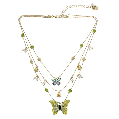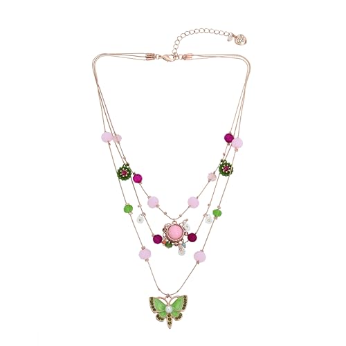 {"about_product": ["TRENDY NECKLACES: Delicate layered chain necklace features mixed faceted beads, delicate stone accents, lovely flowers and heart embellished with woven mixed multi-colored charms. Hand crafted from polished gold-tone metal, glass and plastic", "LIGHTWEIGHT NECKLACES : Effortless and lightweight necklaces easy to put on and take off. Necklace has an adjustable lobster clasp closure", "MEASUREMENTS : 16in length with adjustable 3in extender chain, 3.5in total frontal drop", "PERFECT FOR GIFTING : Wonderful gift for all year-round especially as Birthday Gifts, Bridesmaid's Gifts, Anniversary Gifts, Mother's Day Gifts, Wedding Gifts, Christmas Gifts or any other holiday gifts. Perfect statement piece for any ensemble!", "HYPOALLERGENIC JEWELRY: Made with nickel and lead free metal that is less likely to cause any allergic reaction"], "product_description": "", "product_information": {"ASIN": "B0CM25PR1W", "Department": "womens", "Manufacturer": "Betsey Johnson", "Customer Reviews": "4.4 4.4 out of 5 stars \n\n (5,585)", "Best Sellers Rank": "#22,796 in Clothing, Shoes & Jewelry (See Top 100 in Clothing, Shoes & Jewelry) #4 in Women's Strand Necklaces", "Date First Available": "October 29, 2023"}, "product_details": {"Material": "Glass, Plastic, Metal", "Chain type": "French Rope", "Clasp type": "Lobster", "Item width": "5 inches", "Metal type": "Gold-tone", "Item display length": "11 inches"}}