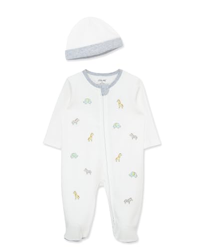 {"about_product": ["Snuggle-approved and snap-worthy—Made with ultra-soft 100% cotton and scratch-free labels, these baby footie pajamas are gentle on baby’s delicate skin. Whether baby pajamas or everyday outfits, capture those Insta-perfect moments with Little Me’s trendy patterns and designs.", "Welcome to the world in style—These adorable baby footie pajamas with matching baby hats are a practical and precious baby shower gift.", "Fuss-free clean-up - Our convenient head-to-toe 2-way zip-up and snap footie design make diaper changes easy. Less stress for you means more snuggles for your little one—perfect for those precious milestones. Simply machine wash cold and tumble dry low.", "Watch them grow with Little Me - Our clothing celebrates those fleeting years when newborns transform into toddlers. Little Me baby clothing should always be comfortable, snuggly, and safe so kids can do what they do best: play, sleep, and thrive.", "Made with Love—Join our journey to more eco-friendly processes and more sustainable garments. Little Me is committed to conducting its business with sensitivity to sustainability and serious concern for the environment."], "product_description": null, "product_information": {"ASIN": "B001MV6YSS", "Department": "baby-boys", "Manufacturer": "Little Me", "Customer Reviews": "4.7 4.7 out of 5 stars \n\n (8,028)", "Best Sellers Rank": "#29,380 in Clothing, Shoes & Jewelry (See Top 100 in Clothing, Shoes & Jewelry) #48 in Baby Boys' One-Piece Footies", "Item model number": "LBQ03991N", "Product Dimensions": "11 x 13 x 1 inches; 4 ounces", "Date First Available": "December 1, 2008"}, "product_details": {"Origin": "Imported", "Fabric type": "100% Cotton", "Care instructions": "Machine wash cold. Do not bleach. Tumble dry low."}}