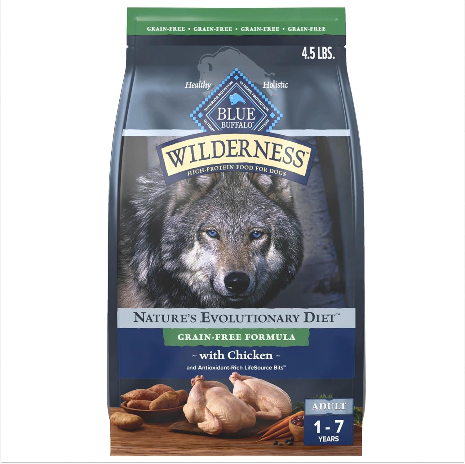 {"about_product": ["GRAIN-FREE RECIPE: Made with complex carbohydrates like potatoes and sweet potatoes, and none of the grains some Pet Parents choose to avoid", "PACKED WITH REAL CHICKEN: Starts with real chicken to satisfy your dog’s cravings, part of a High-Protein diet", "BALANCED DIET: A perfect balance of protein, fats, and complex carbohydrates support your adult dog’s active life", "NATURAL INGREDIENTS: BLUE foods are made with the finest natural ingredients enhanced with vitamins, minerals, and other nutrients; contains NO chicken (or poultry) by-product meals, NO corn, wheat, or soy, and NO artificial flavors or preservatives", "ADDITIONAL FORMULAS: In addition to grain-free, BLUE Wilderness also comes in recipes WITH WHOLESOME GRAINS to meet the preferences of every Pet Parent", "CONTAINS: One (1) 4.5-lb bag of BLUE Wilderness Adult High-Protein Dry Dog Food with Real Chicken, Grain-Free, Made in the USA with Natural Ingredients, Chicken"], "product_description": "Like their ancestors before them, dogs were born to love meat. That’s why BLUE Wilderness HIGH-PROTEIN DOG FOOD is packed with the meat dogs crave. With delicious real chicken as the first ingredient, Blue Buffalo Wilderness Natural Grain-Free Dry Food for Adult Dogs, Chicken Recipe provides natural, balanced nutrition to help your dog thrive while satisfying their wild side. This protein-rich, grain-free formula contains fats, complex carbohydrates, fruits, and vegetables for wholesome, well-rounded nutrition without the grains some Pet Parents choose to avoid. High-quality protein from deboned chicken helps your dog maintain strong, healthy, lean muscles. BLUE Wilderness dog foods are backed by the True BLUE Promise and always start with real, high-quality meat, poultry, or fish. They contain no chicken or poultry by-product meals, no corn, wheat, or soy, and no artificial flavors or preservatives. BLUE Wilderness is brought to you by Blue Buffalo, the leader in natural pet food. Love them like family. Feed them like family.", "product_information": {"ASIN": "B00ZDJ78HQ", "Size": "4.5 Pound (Pack of 1)", "Color": "brown", "Style": "Chicken, Grain Free", "Brand Name": "BLUE WILDERNESS", "Directions": "Up to 15 lbs ½ to 1 ¼ cups* 16 to 25 lbs 1 ¼ to 1 ¾ cups* 26 to 40 lbs 1 ¾ to 2 ¼ cups* 41 to 60 lbs 2 ¼ to 3 ¼ cups* 61 to 80 lbs 3 ¼ to 4 cups* 81 to 100 lbs 4 to 4 ¾ cups* Over 100 lbs 4 ¾ cups* + ½ cup for each additional 20 lbs *Use a standard 8-oz. measuring cup. Note: Individual dog's requirements may vary due to age, breed, environment, and activity level. Adjust food as required to maintain optimal body condition, and ask your veterinarian if you are unsure.", "Model Name": "BLUE Wilderness", "Item Weight": "4.57 Pounds", "Manufacturer": "Blue Buffalo Company, Ltd", "Number of Items": "1", "Care Instructions": "Be sure to have a clean dish of cool, fresh water available at all times.", "Item model number": "800252", "Breed Recommendation": "All Breed Sizes, Medium Breeds", "Date First Available": "June 10, 2009", "Age Range Description": "Adult", "Item Dimensions LxWxH": "13.75 x 8 x 5 inches", "Target Audience Keyword": "dogs", "Specific Uses for Product": "Coat", "Item Package Dimensions L x W x H": "13.58 x 8.7 x 4.72 inches"}, "product_details": {"Brand": "BLUE WILDERNESS", "Flavor": "Chicken, Grain Free", "Item Form": "Dry", "Age Range (Description)": "Adult", "Specific Uses For Product": "Coat"}}