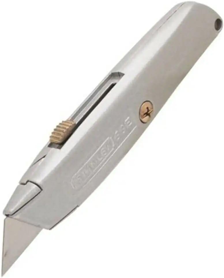 {"about_product": ["Starts sharper and stays sharper than standard heavy-duty blades", "3-position, retractable blade; blade storage in handle", "Patented interlocking nose holds blade securely", "Includes 3 blades"], "product_description": "The Stanley 6-Inch Classic 99 Retractable Utility Knife starts sharper and stays sharper than standard heavy-duty blades. This knife features a patented interlocking nose to hold the blade securely. The three-position, retractable blade can be stored in the handle. This knife includes three blades and comes with Stanley's limited lifetime warranty. Everyone knows the importance of the right tool for the job. Stanley's \"Application Specific Blades\" are designed with unique features for cutting drywall, roofing shingles and paper. Each blade is constructed of carbon alloy steel. With Stanley's patented S3 Technology, paper blades start sharper and stay sharper, roofing blades are stronger, and drywall and paper blades deliver more cuts per blade. The entire line provides better performance than standard heavy duty blades. View the comparison chart to choose the Stanley blade that is right for you.", "product_information": {"UPC": "705554345040", "ASIN": "B013P44YHM", "Size": "6 Inch (Pack of 2)", "Brand": "STANLEY", "Color": "Grey", "Style": "Retractable", "Material": "Alloy Steel", "Item Length": "48.6 Inches", "Item Weight": "0.16 ounces", "Part Number": "10-099", "Manufacturer": "Stanley", "Blade Material": "Alloy Steel", "Handle Material": "Alloy Steel", "Best Sellers Rank": "#14,733 in Tools & Home Improvement (See Top 100 in Tools & Home Improvement) #94 in Utility Knives", "Item model number": "10-099", "Batteries Included?": "No", "Batteries Required?": "No", "Date First Available": "October 15, 2014", "Item Package Quantity": "1", "Is Discontinued By Manufacturer": "No"}, "product_details": {"UPC": "705554345040", "Brand": "STANLEY", "Color": "Grey", "Style": "Retractable", "Material": "Alloy Steel", "Item Length": "48.6 Inches", "Item Weight": "4.54 g", "Manufacturer": "Stanley", "Blade Material": "Alloy Steel", "Handle Material": "Alloy Steel"}}