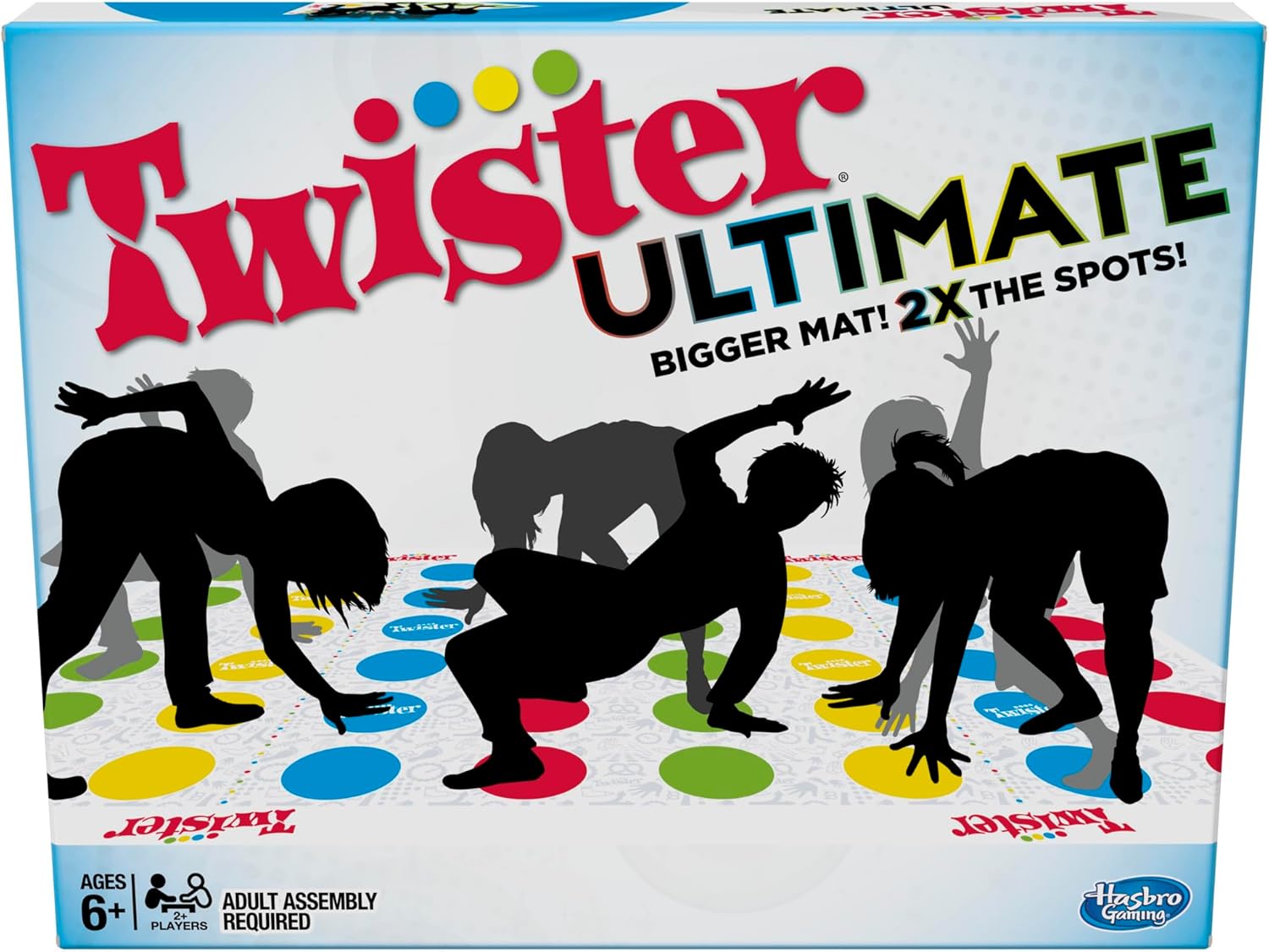 {"about_product": ["Classic Twister gameplay", "Larger mat with more spots", "The last player standing wins", "GREAT INDOOR AND OUTDOOR GAME: This Twister game includes a spinner and a plastic floor mat that’s twice the size of the original with more and bigger colored spots; It's easy to set up and put away"], "product_description": "Product Description The classic Twister game you grew up with has a plastic floor mat that's twice the size of the original, and features more and bigger colored spots, making this the ultimate party game! The spinner tells you where to place your hands and feet on the spots of the extra-large floor mat, twisting players into all kinds of funny positions. For optional spinner-less play, use the Twister Spinner Alexa skill (Alexa device sold separately)! With the Twister Spinner skill, nobody has to leave the mat to spin for the next move. Right hand goes here, left hand goes there, and your feet … who knows where? Pull out the Twister Ultimate game when you want an icebreaker or team-building game, or a quick and fun game for kids. When you're done playing, it's easy to fold and pack, ready to bring to your next gathering. Hasbro and all related terms are trademarks of Hasbro. Amazon, Echo, Alexa and all related logos are trademarks of Amazon. or its affiliates. By Twister. Brand Story By Twister", "product_information": {"ASIN": "B01ALHAEWA", "Item Weight": "1.65 pounds", "Manufacturer": "Hasbro", "Release date": "July 1, 2016", "Best Sellers Rank": "#1,050 in Toys & Games (See Top 100 in Toys & Games) #5 in Floor Games", "Item model number": "B8165", "Product Dimensions": "64.02 x 94.33 x 0.04 inches", "Manufacturer recommended age": "6 - 15 years", "Is Discontinued By Manufacturer": "No"}, "product_details": {}}