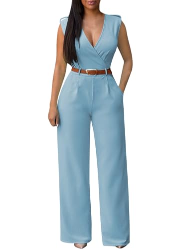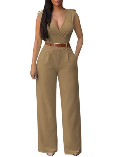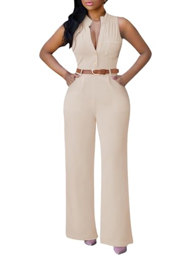 {"about_product": ["Chic V-Neck Style: Women's sleeveless V-neck jumpsuit perfect for casual office or evening occasions", "Functional Pockets: Wide leg jumpsuit with two convenient side pockets, blending practicality with a polished, professional look", "Adjustable Belt: one pice jumpusit includes a matching removable belt, allowing a customizable fit and enhanced waist definition. invisible side zipper", "Premium Comfort: Made from soft, breathable,stretchy fabric with a relaxed wide-leg cut, ensuring all-day comfort and effortless elegance", "Versatile Wear: jumpsuit great for daily,dating,work, business meetings, or semi-formal events; easily transitions from day to night with heels or flats"], "product_description": "Pink Queen Women's Elegant V Neck Sleeveless Button Wide Leg Long Pants Belted Dressy Rompers Jumpsuits\n\nFeature: Wrap V neck/ Sleeveless/ Wide leg long pants/ Slim fitted/ Dressy jumpsuit for women with belt\n\nSize Chart In Inches: \n\nJumpsuit Length: S58.66£¬M59.45£¬L60.24£¬XL61.02£¬2XL61.81\n\nBust: S33.86£¬M35.43£¬L37.80£¬XL40.16£¬2XL42.52\n\nWaist£ºS26.38£¬M27.95£¬L30.31£¬XL32.68£¬2XL35.04\n\nHip: S36.22£¬M37.80£¬L40.16£¬XL42.52£¬2XL44.88", "product_information": {"ASIN": "B0FZJJNTTX", "Department": "womens", "Manufacturer": "Pink Queen", "Customer Reviews": "4.1 4.1 out of 5 stars \n\n (14,295)", "Product Warranty": "For warranty information about this product, please click here", "Best Sellers Rank": "#37,950 in Clothing, Shoes & Jewelry (See Top 100 in Clothing, Shoes & Jewelry) #61 in Women's Jumpsuits", "Item model number": "Jumpsuits", "Date First Available": "May 21, 2024"}, "product_details": {"Origin": "Imported", "Fabric type": "Blended, soft, stretchy & comfy fabric", "Care instructions": "Machine Wash"}}