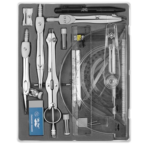 {"about_product": ["Geometry Set For All Levels Designed in USA", "Package Includes 15 Piece: 2 Metal Compasses (1 Study Compass & 1 Graphic Compass), 1 Extra Lead for Graphic Compass, 1 Metal Divider, 2 Pencils for Compass, 1 Mechanical Pencil (0.5 mm) for Compass, 1 Pack of 0.5 mm Lead for Mechanical Pencil, 1 Eraser, 1 Metal Pencil Sharpener, 1 Ruler (6”), 1 Set Square (30°/60°), 1 Set Square (45°), 1 Protractor, 1 Protractor with Swing Arm (6”)", "15 Piece Geometry Set, Compass Set in a Reusable Pouch, Easy to Carry and Store", "Inch and Centimeter Measurements", "The Math Set/Geometry Set Designed by Experienced Math Experts with All Essential Items for Teachers and Students at Any Level"], "product_description": null, "product_information": {"ASIN": "B01F4HU076", "Brand": "Mr. Pen", "Color": "Classic Slate", "Item Weight": "3.2 ounces", "Manufacturer": "Mr. Pen", "Best Sellers Rank": "#2,154 in Office Products (See Top 100 in Office Products) #1 in Geometry Sets", "Item model number": "GC15", "Product Dimensions": "6 x 4 x 0.4 inches", "Date First Available": "May 3, 2016", "Manufacturer Part Number": "GC15", "Is Discontinued By Manufacturer": "No"}, "product_details": {}}
