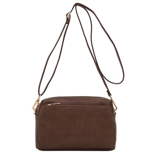 {"about_product": ["Dimensions: 8.5\" (L) x 5.5\" (H) x 2.75\" (D)", "Zipper closure, Faux leather & gold tone hardware", "Adjustable shoulder strap with 26\" drop", "1 open pocket & 1 zipper pocket inside", "This crossbody offers exceptional ease of use and ensures maximum comfort for everyday use"], "product_description": "", "product_information": {"ASIN": "B01LWCSMG2", "Department": "womens", "Customer Reviews": "4.6 4.6 out of 5 stars \n\n (33,583)", "Product Warranty": "For warranty information about this product, please click here", "Best Sellers Rank": "#6,849 in Clothing, Shoes & Jewelry (See Top 100 in Clothing, Shoes & Jewelry) #17 in Women's Crossbody Handbags", "Item model number": "4331335554", "Product Dimensions": "8.5 x 2.75 x 5.5 inches; 7.8 ounces", "Date First Available": "September 6, 2016", "Is Discontinued By Manufacturer": "No"}, "product_details": {"Origin": "Imported", "Fabric type": "PU leather", "Closure type": "Zipper"}}