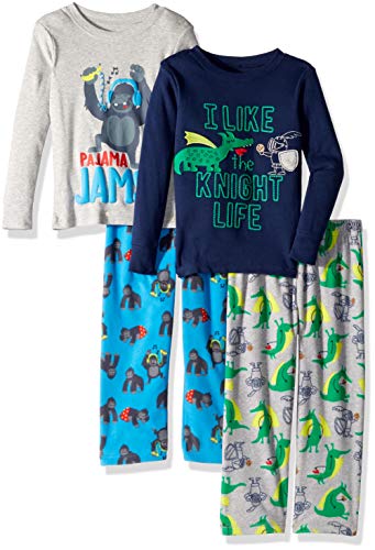 {"about_product": ["4-Piece Pajama Set: Includes two soft cotton long-sleeve tops and two pairs of fleece pants, offering a complete set that provides versatile options for all seasons.", "Comfortable Cotton Tops: The cotton tops are breathable, soft, and gentle on your child's skin, ensuring all-night comfort. Perfect for a cozy sleep without overheating.", "Snug Fleece Pants: The fleece pants provide warmth and softness, making them ideal for cooler nights. The elastic waistband offers a secure, adjustable fit for growing kids.", "Fun Prints and Colors: The set features playful prints and bold, vibrant colors, adding excitement and personality to bedtime. Whether your child loves animals, vehicles, or fun patterns, there's something to suit every taste.", "Exceptional value: Value for Money: A budget-friendly set offering great value with multiple pieces included. It's an affordable way to stock up on stylish, comfortable pajamas that can be rotated for regular wear.", "Easy Care: Designed for busy parents, this set is machine washable, ensuring it stays looking fresh and clean after multiple washes, without losing its softness or shape."], "product_description": "4-Piece pajama set includes 2 long sleeve cotton tops with 2 cozy fleece pants", "product_information": {"ASIN": "B06XDHRDLD", "Department": "boys", "Item Weight": "1 Pounds", "Manufacturer": "Carter's Simple Joys - Private Label", "Customer Reviews": "4.7 4.7 out of 5 stars \n\n (29,816)", "Best Sellers Rank": "#1,033 in Our Brands (See Top 100 in Our Brands) #4 in Boys' Pajama Sets", "Item model number": "S43G004", "Date First Available": "June 14, 2017"}, "product_details": {"Origin": "Imported", "Fabric type": "Top: 100% Cotton; Bottom: 100% Polyester", "Care instructions": "Machine Wash"}}