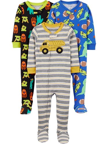 {"about_product": ["3-Pack Value: Three pairs of footed pajamas, a great value for quality sleepwear at an affordable price", "Snug-Fit Design: Designed to be snug-fitting to enhance safety and provide a comfortable fit - perfect for active little ones", "Footed Design: Foot coverage keeps your child warm and cozy from head to toe, ideal pajamas for cooler nights", "Safety Chin Tab: The full-length zipper features a protective chin tab to prevent skin irritation or pinching, adding an extra layer of comfort and safety", "Full-Length Zipper: Easy-to-use full-length zipper allows for quick and convenient dressing or diaper changes, minimizing fuss, especially during the night", "Multiple Prints and Patterns: A variety of fun, colorful prints and patterns appealing to both children and parents, making bedtime exciting and stylish"], "product_description": "Wrap your little one in the same trusted quality you've come to love from Carter's with the Simple Joys 3-Pack Snug Fit Footed Pajamas for baby and toddler boys. Designed for comfort and safety, these pajamas feature a snug fit that keeps your child warm and secure throughout the night. Made from soft, breathable materials and OEKO-TEX certified for safe, chemical-free wear, they ensure a cozy sleep with every use. The full-length zipper with a protective chin tab makes dressing and diaper changes quick and easy, while the tagless design eliminates irritation for sensitive skin. With a variety of fun prints and patterns, bedtime will be both stylish and exciting. This 3-pack pajamas set for boys offers excellent value without compromising on the trusted durability and comfort you expect from Carter's. Ideal for all seasons, these footed pajamas are perfect for your little one’s bedtime routine.", "product_information": {"ASIN": "B0CR335T2N", "Department": "baby-boys", "Manufacturer": "Carter's Simple Joys - Private Label", "Customer Reviews": "4.7 4.7 out of 5 stars \n\n (49,748)", "Best Sellers Rank": "#985 in Our Brands (See Top 100 in Our Brands) #6 in Baby Boys' One-Piece Footies", "Item model number": "S41G005", "Date First Available": "December 28, 2023"}, "product_details": {"Origin": "Imported", "Fabric type": "100% Cotton", "Care instructions": "Machine Wash"}}