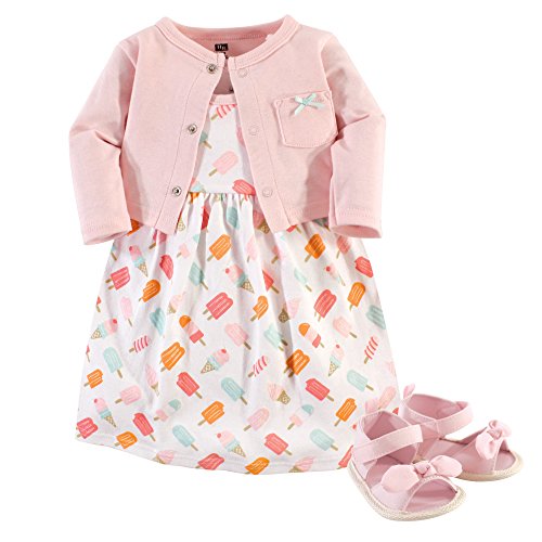 {"about_product": ["Set includes dress, cardigan and shoes", "Clothing made with 100% cotton", "Soft, gentle and comfortable on baby's skin", "Optimal for everyday use", "Affordable, high quality outfit"], "product_description": "Hudson Baby dress, cardigan and shoes feature bright, fun, classy prints for baby girls, designed to keep your little one cool and cute on spring, summer and warmer days. The 100% cotton dress and cardigan features a gathered waist with an adorable print dress and solid colored cardigan with a cute pocket bow. The dress and cardigan come with a matching pair of shoes to make this the cutest girl outfit.", "product_information": {"ASIN": "B09X5WSSVC", "Department": "baby-girls", "Manufacturer": "Hudson Baby", "Customer Reviews": "4.7 4.7 out of 5 stars \n\n (19,370)", "Best Sellers Rank": "#64,625 in Clothing, Shoes & Jewelry (See Top 100 in Clothing, Shoes & Jewelry) #70 in Baby Girls' Playwear Dresses", "Date First Available": "February 4, 2017"}, "product_details": {"Origin": "Imported", "Fabric type": "100% Cotton", "Care instructions": "Clothing: Machine washable / Shoes: Spot clean only"}}