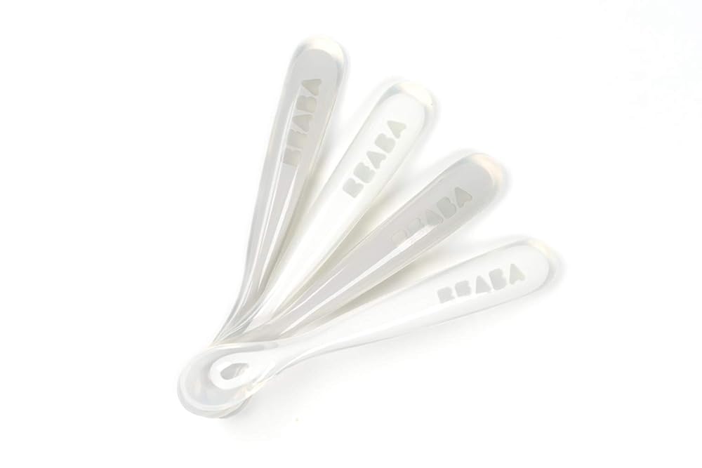 {"about_product": ["silicone", "BABY FIRST BABY FEEDING SPOON SET: Ensure a smooth transition to solid foods with our Baby First Feeding Spoon Set. Crafted with your baby's safety and comfort in mind, these stage 1 silicone spoons are perfect for their initial feedings. Their gentle design helps make mealtime a pleasant experience for both you and baby. Add this essential set to your list of baby must haves and support your baby’s journey into solid foods with confidence!", "GENTLE ON BABY'S GUMS: Our baby silicone spoons are crafted from ultra-soft silicone, ensuring they are gentle on your little one's gums and teeth. With no metal or rough edges, these silicone spoons are designed to protect your baby's delicate gums, especially during teething. Once baby starts self feeding, graduate to our Toddler’s Self Feeding Silicone Spoons feeding set.", "EASY FEED HANDLE: Our spoons feature an ergonomically designed handle that makes feeding effortless from any angle. The silicone handle is perfectly sized to easily reach and scrape the bottom of jars, ensuring you can get every bit of nutritious food for your baby. Silicone spoon handle design helps make it simpler for parents to feed their baby comfortably. A baby feeding essentials!", "PERFECT SPOON DEPTH: The shallow design of the spoon limits the amount of food that can be scooped up at one time. This helps prevent the risk of choking by ensuring that your baby receives a manageable portion of food with each bite. By controlling the volume of food per spoonful, parents can better monitor and manage their baby's eating pace. The perfect baby feeding spoons!", "A BRAND YOU CAN TRUST: Since 1989, BEABA has been at the forefront of designing innovative, aesthetically pleasing, and safe products for children. Renowned globally for our commitment to quality and innovation, BEABA continues to lead the industry with products that blend functionality with style. Our dedication to safety, excellence, and design ensures that every product, including our baby spoons, meets the highest standards, providing parents with peace of mind and children with the best in comfort and care."], "product_description": null, "product_information": {"UPC": "812995012346", "ASIN": "B06XX4GVYL", "Best uses": "baby feeding utensils, first stage cutlery, baby spoons, silicone spoons", "Is portable": "No", "Item Weight": "1.12 ounces", "Material Type": "Silicone", "Number Of Items": "4", "Number of Pieces": "4", "Best Sellers Rank": "#11,240 in Baby (See Top 100 in Baby) #57 in Toddler Spoons", "Care instructions": "Dishwasher Safe, Hand Wash", "Item model number": "913418", "Batteries required": "No", "Is Dishwasher Safe": "Yes", "Material Type Free": "BPA Free, Lead Free, Phthalate Free, Plastic Free", "Product Dimensions": "6.6 x 1 x 0.4 inches", "Is Discontinued By Manufacturer": "No"}, "product_details": {"Brand": "Béaba", "Color": "Cloud", "Style": "Modern", "Material": "Silicone", "Product Dimensions": "6.6"L x 1"W"}}