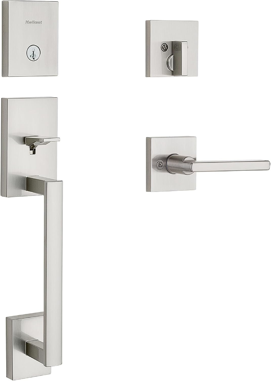 {"about_product": ["HANDLESET WITH DEADBOLT: Use on exterior front doors with two bore holes, comes with interior lever and locking deadbolt turn piece, key operated from outside", "SMARTKEY SECURITY: Kwikset’s SmartKey Security technology protects against advanced break-in techniques and allows you to re-key your lock yourself in seconds", "EASY INSTALL: Do it yourself, installs in minutes with just a screwdriver, if door is missing a bottom handleset support hole you will need a drill, directions provided", "FITS STANDARD DOORS: Fits standard size doors 1-3/8\" to 1-3/4\" thick, adjustable latch backset from 2-3/8\" to 2-3/4\" with just a twist during installation", "BOX INCLUDES: Exterior Keyed Deadbolt, Handleset, Interior Turn Piece, Interior Lever, Adjustable Latch, 2 Keys, Screws, Strike Plate, SmartKey Tool, Installation Hardware, Install Guide", "CERTIFIED TRUSTED QUALITY: Security, Durability and Finish are Grade 1 BHMA certified, designed for the highest level of security and the toughest environments with frequent use", "WARRANTY PROTECTION: Our products are backed by a lifetime mechanical and finish warranty with great customer service, see Kwikset warranty for more details", "MICROBAN PROTECTION: Kwikset’s door hardware is treated with Microban, this offers powerful product protection that is 99.9% cleaner than an unprotected surface", "CONTEMPORARY DESIGN: Available in a sophisticated, modern door hardware style with simple, unique details to match your home décor"], "product_description": "Step up to designer styles and superior security with Kwikset Signature Series Products. The San Clemente handleset has a sleek, modern look. With clean lines and a variety of finishes, you can easily upgrade the entry to your home. San Clemente also features an adjustable through bolt screw that allows for easy door mounting and a guaranteed fit. Handleset can be locked or unlocked by a key from the outside or with a key/turnpiece from the inside. The crisp, clean appearance of the Satin Nickel finish adds to the overall look of the product and brings a modern feel.", "product_information": {"UPC": "883351609241", "ASIN": "B06Y3M1GBN", "Size": "With Handle", "Brand": "Kwikset", "Color": "Satin Nickel", "Finish": "Satin Nickel", "Pattern": "Keyed Entry", "Material": "Metal", "Lock Type": "Key Lock", "Item Depth": "1.5 inches", "Unit Count": "1.0 Count", "Item Weight": "6.12 pounds", "Part Number": "98180-002", "Manufacturer": "Kwikset", "Exterior Finish": "Nickel", "Handle Material": "Metal", "Number of Items": "1", "Special Feature": "Key Unlock", "Hand Orientation": "Ambidextrous", "Number Of Pieces": "1", "Special Features": "Key Unlock", "Best Sellers Rank": "#12,597 in Tools & Home Improvement (See Top 100 in Tools & Home Improvement) #10 in Door Handle Sets", "Item model number": "98180-002", "Product Dimensions": "7.99\"L x 5.49\"W", "Batteries Included?": "No", "Batteries Required?": "No", "Included Components": "Deadbolt, Handleset, Interior Turn Piece, Lever, Adjustable Latch, 2 Keys, Screws, Strike Plate, SmartKey Tool, Installation Hardware, Guide", "Date First Available": "April 6, 2017", "Customer Package Type": "Standard Packaging", "Item Package Quantity": "1", "Specific Uses For Product": "Front door", "Handle Attachment Mechanism": "Screw-on"}, "product_details": {"Brand": "Kwikset", "Color": "Satin Nickel", "Style": "Exterior & Interior", "Material": "Metal", "Product Dimensions": "7.99"L x 5.49"W"}}