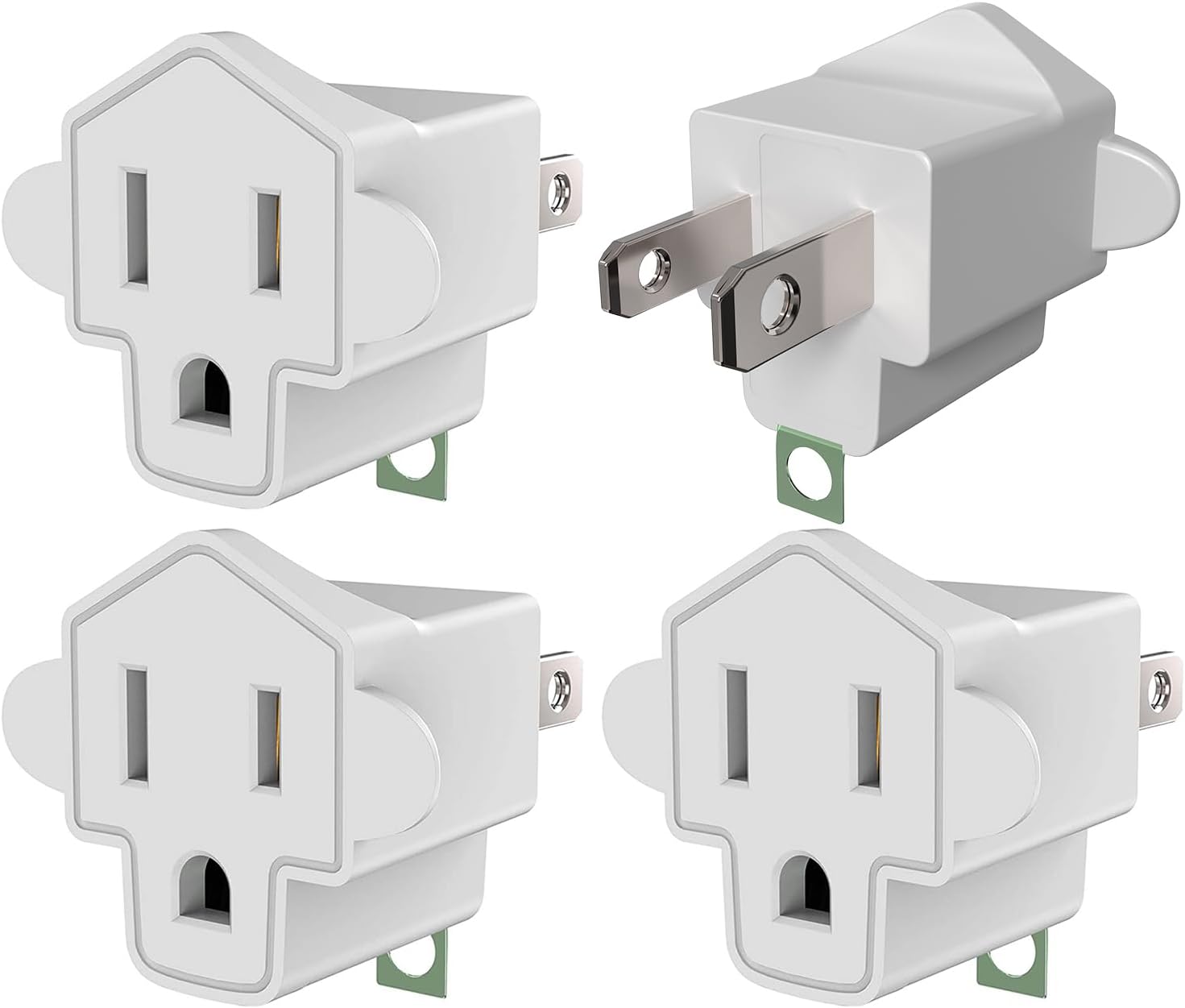 {"about_product": ["Fire-proof Material PBT", "【Premium Quality Electrical Adapter】ETL Listed. JACKYLED 3-2 prong adapter is made of fire-proof material PBT that is high temperature-resistant up to 392℉. With AC 125V/15A and Electrical Rating 1875W Max Wattage, this light socket outlet 3-prong is sturdy enough for working with electrical, household, Industrial, machinery and other appliances.", "【Wall Outlet Converter】The 2 prong to 3 prong outlet adapter can covert a grounded electric extension power cord to an AC outlet without a grounding pin slot, perfect for older houses or offices with AC wall outlets that can not accept grounded plugs.", "【Polarized Plug】The 3-prong to 2-prong grounding adapters is polarized and better than the un-polarized plug adapters, because polarized plugs only allow you insert the plug into the outlet slots in one direction, wide blade to wide slot, narrow blade to narrow slot, which ensures neutral-to-neutral, hot-to-hot and provides a measure of safety for the appliances and house wiring to be aligned in terms of polarity. This also explains why most household appliances’ plugs are polarized.", "【Portable and Easy to Use】It's small and compact so you can take a 2- to 3-prong adapter in your briefcase or laptop bag anywhere. Just plug the adapter to a wall socket and you will have a 3-prong outlet. This 3 prong to 2 prong adapter is also portable for travelling to Japan. All outlets in Japan is 2-prong, so with this adapter, you can easily charge your 3-prong electronic devices.", "【Grounded Protection】This three-prong to two-prong adapter plug fits snugly into the wall outlet without falling out even when plugging a heavy cord into the adapter. It has a metal grounding tab / terminal to fit neatly under the outlet plate screw and provide a proper grounding for safety. Note: Using a 2-prong to 3-prong outlet adapter on ungrounded 2-prong outlets is not recommended."], "product_description": null, "product_information": {"ASIN": "B071FFHQNC", "Size": "4 Pack", "Color": "A-Ivory White", "Style": "simple", "Finish": "PBT fireproof material", "Pattern": "simple", "Voltage": "125 Volts", "Wattage": "1875.00", "Material": "Metal", "Item Weight": "2.39 ounces", "Part Number": "JK161-3to2prong-4", "Plug Format": "Type B", "Switch Type": "One-way", "Manufacturer": "JACKYLED", "Power Source": "AC", "Switch Style": "One-way", "Mounting Type": "plug-in", "Number Of Pieces": "4", "Special Features": "Portable, Travel", "Best Sellers Rank": "#1,464 in Tools & Home Improvement (See Top 100 in Tools & Home Improvement) #11 in Electrical Adapters", "Item model number": "FSA-01C", "Product Dimensions": "1.96 x 1.1 x 1.37 inches", "Batteries Included?": "No", "Batteries Required?": "No", "Included Components": "Polarized Grounding Adapter Plug", "Date First Available": "May 22, 2017", "Is Discontinued By Manufacturer": "No"}, "product_details": {"Brand": "JACKYLED", "Color": "A-Ivory White", "Finish Type": "PBT fireproof material", "Compatible Devices": "Electric shaver, Laptop, Smartphone, Speaker, Tablet", "Item dimensions L x W x H": "1.96 x 1.1 x 1.37 inches"}}