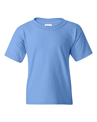 {"about_product": ["Classic fit for loose comfort", "Versatile mid-weight fabric for year-round wear", "Taped neck and shoulders for comfort and durability", "Non-topstitched, classic width, rib collar", "Tear away label for customizable comfort", "Screen printing, embroidery, iron-on transfers, bleaching, tie dye"], "product_description": "Gildan’s Youth Heavy Cotton T-Shirt is a great wardrobe addition that can be worn year-round to school, games or the playground. It’s made of sturdy, midweight 100% U.S. cotton and features a classic fit. Add colorful, fun graphics using screen printing, embroidery, iron-on transfers or give it a retro feel with bleach or tie dye. Companion styles for men, women and toddlers make it family friendly!", "product_information": {"ASIN": "B0767RJYTL", "Department": "unisex-child", "Manufacturer": "Gildan", "Customer Reviews": "4.6 4.6 out of 5 stars \n\n (3,741)", "Best Sellers Rank": "#26,623 in Clothing, Shoes & Jewelry (See Top 100 in Clothing, Shoes & Jewelry) #75 in Boys' T-Shirts", "Item model number": "G5000BP2", "Date First Available": "November 27, 2017"}, "product_details": {"Origin": "Imported", "Fabric type": "Solids: 100% Cotton; Sport Grey: 90% Cotton, 10% Polyester; Safety Colors: 50% Cotton, 50% Polyester", "Closure type": "Pull On", "Care instructions": "Machine Wash"}}