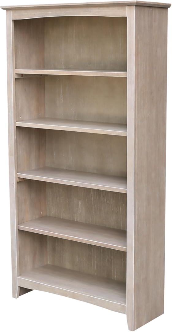 {"about_product": ["[★ SOLID PARAWOOD CONSTRUCTION ★] This piece is crafted from solid parawood, known for its exceptional strength and durability. Its sturdy build ensures long-lasting reliability, providing a solid foundation for everyday use.", "[★ IDEAL DIMENSIONS ★] Measuring 32\"W x 12\"D x 60\"H, this piece is perfect for any space. It offers ample height and width while maintaining a sleek and compact profile, making it a versatile addition to your home.", "[★ ADJUSTABLE SHELVES ★] The two adjustable shelves, measuring 28.85\"W x 9.84\"D, allow you to customize the storage space to fit your needs. Perfect for organizing books, decor, and more, these shelves offer flexibility.", "[★ EASY ASSEMBLY ★] Assembly is quick and simple, with all necessary hardware included. Set it up effortlessly and enjoy the stylish, functional design of this piece in no time, enhancing your space with ease.", "[★ DURABLE STORAGE ★] With a weight capacity of 40 pounds per shelf and a 10.52\" distance between shelves, this piece provides ample storage space while maintaining sturdy support for heavier items."], "product_description": "For those who appreciate high quality wood furniture with a traditional and elegant look. International Concepts home furnishings will complement any décor.", "product_information": {"UPC": "727506723515", "ASIN": "B076Q29BJH", "Size": "60 Inch", "Brand": "IC INTERNATIONAL CONCEPTS", "Color": "Washed Gray Taupe", "Style": "Traditional", "Room Type": "Bathroom, Bedroom, Closet, Dining Room, Hallway, Kitchen, Office, Study Room", "Model Name": "Shaker Solid Wood Bookcase", "Unit Count": "1.0 Count", "Finish Type": "Washed gray taupe", "Item Weight": "84 pounds", "Finish types": "Washed gray taupe", "Manufacturer": "International Concepts", "Weight Limit": "100 Pounds", "Number of Items": "1", "Shelf Thickness": "9.84 Inches", "Special Feature": "Adjustable", "Weight capacity": "Minimum weight: 40 Pounds", "Furniture Finish": "Wood", "Number of pieces": "1", "Assembly Required": "Yes", "Best Sellers Rank": "#306,881 in Home & Kitchen (See Top 100 in Home & Kitchen) #589 in Bookcases", "Installation Type": "Freestanding", "Item model number": "SH09-3226A", "Number of Shelves": "5", "Batteries required": "No", "Product Dimensions": "12\"D x 32\"W x 60\"H", "Included Components": "Bookcase", "Warranty Description": "International concepts warrants this product to be free of manufacturing defects at the time of shipment. No extended warranty is offered beyond this initial period. For parts requests, please contact our customer service team at dropship@whitewood. Net or 888- 944-8396 (monday-friday, 8:30 am – 5:00 pm est).", "Product Care Instructions": "Wipe with Dry Cloth", "Specific Uses For Product": "Books, Decorative Items, Plants, Toiletries", "Recommended Uses For Product": "Home Decor, Storage", "Assembly Instructions Description": "Included", "Global Trade Identification Number": "00727506723515"}, "product_details": {"Shape": "Rectangular", "Style": "Traditional", "Material": "Rubberwood", "Room Type": "Bathroom, Bedroom, Closet, Dining Room, Hallway, Kitchen, Office, Study Room", "Shelf Type": "Barrister Shelf", "Finish Type": "Washed gray taupe", "Mounting Type": "Floor Mount", "Special Feature": "Adjustable", "Number of Shelves": "5", "Product Dimensions": "12"D x 32"W x 60"H"}}