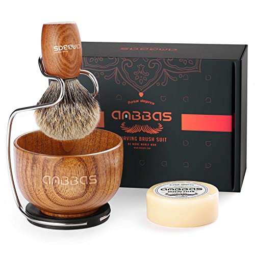 {"about_product": ["TECHNOLOGY: Handcrafted production,every brush hair need to go through 25 working procedures, absolute pure badger hair, with wonderful shape and no shedding, no terrible smell,design with natural solid manchurian ash wood handle.", "CHARACTER: Badger hair(fuzz part) is silky, soft and firm, as water absorbing and heat retention capability, works well with all shaving soap and all foams, gels or creams, perfect for thick, glossy lathering, easy to clean, and fairly quick to dry.", "PURPOSE: Perfect gift idea for who like traditional wet shaving, great gift idea for your father, husband, boyfriend or for any wet shavers looking for a fabulous combination.", "TIPS: Recommend thoroughly rinse the shaving brush, shake and hang it to dry. The longevity of a quality badger hair shaving brush is directly related to the care and respect it is given.", "ACCESSORIES: 100g Goat milk soap for shaving; Shaving Stand: Hang shaving brush to maintain brush hair, lathering shaving foam in the 2 layers shaving mug"], "product_description": null, "product_information": {"UPC": "734009769742", "ASIN": "B0772K2MN4", "Manufacturer": "Anbbas", "Customer Reviews": "4.6 4.6 out of 5 stars \n\n (5,474)", "Best Sellers Rank": "#9,869 in Beauty & Personal Care (See Top 100 in Beauty & Personal Care) #3 in Shaving Brushes", "Item model number": "B0772K2MN4", "Product Dimensions": "5 x 4 x 2 inches; 5.6 ounces", "Is Discontinued By Manufacturer": "No"}, "product_details": {"UPC": "734009769742", "ASIN": "B0772K2MN4", "Manufacturer": "Anbbas", "Customer Reviews": "4.6 4.6 out of 5 stars \n\n (5,474)", "Best Sellers Rank": "#9,869 in Beauty & Personal Care (See Top 100 in Beauty & Personal Care) #3 in Shaving Brushes", "Item model number": "B0772K2MN4", "Product Dimensions": "5 x 4 x 2 inches; 5.6 ounces", "Is Discontinued By Manufacturer": "No"}}