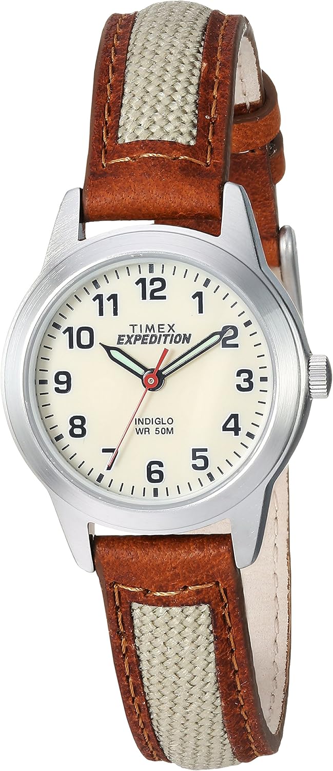 {"about_product": ["Classic Design: Cream dial with full Arabic numerals offers a clean, timeless everyday look", "Polished Case: Silver-tone 26mm brass case with mineral glass crystal adds refined durability", "Comfort Fit: Adjustable beige 12mm nylon strap with brown genuine leather trim fits wrists up to 7.5 inches", "Night-Ready Visibility: INDIGLO light-up dial and luminous hands ensure easy readability in low light", "Water-Resistant: Safe to 50 m / 165 ft — suitable for short periods of recreational swimming, but not diving or snorkeling"], "product_description": "", "product_information": {"ASIN": "B079HWW5H5", "Batteries": "1 Lithium Metal batteries required. (included)", "Department": "womens", "Manufacturer": "Timex", "Customer Reviews": "4.5 4.5 out of 5 stars \n\n (5,394)", "Best Sellers Rank": "#62,717 in Clothing, Shoes & Jewelry (See Top 100 in Clothing, Shoes & Jewelry) #144 in Women's Wrist Watches", "Item model number": "TW4B11900", "Package Dimensions": "3.46 x 2.91 x 2.52 inches; 0.8 ounces", "Date First Available": "March 2, 2018", "Is Discontinued By Manufacturer": "No"}, "product_details": {"Material": "Brass"}}