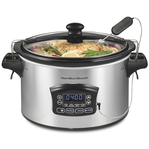 {"about_product": ["Integrated Temperature Probe: Track Your Food’s Temperature With the Probe, Minimizing the Chances of Overcooking and Helping to Ensure Food Safety When Cooking Beef, Pork & Poultry", "Multiple Cooking Functions: Cook on Low, Medium or High With or Without the Probe; When the Food Is Ready, the Slow Cooker Shifts to Keep Warm or Holds It at the Selected Temperature", "Expand Your Cooking Options: Hold Temperature Function Lets You Sous Vide, Prepare Yogurt, Poach, Simmer, Braise, Make Fondue & More", "Digital Display: Countdown Timer Displays Remaining Cooking Time and Toggles Between the Selected Food Temperature and a Current Internal Temperature When the Probe Is in Use", "6 Quart Capacity: Perfect Size for a 6 LB. Chicken or 4 LB. Roast"], "product_description": "Hamilton Beach slow cookers take the convenience of slow-cooked dishes A giant step further. Even if you typically use your slow cooker at home, you'll be impressed by the attractive design, easy-to-use features and simple Dishwasher cleanup that a Hamilton Beach slow cooker offers you.", "product_information": {"UPC": "040094338665", "ASIN": "B07BB9ZQDY", "Size": "6 Quarts", "Brand": "Hamilton Beach", "Color": "Temp Tracker, Black Stainless", "Shape": "Oval", "Pattern": "Programmable Slow Cooker", "Voltage": "220 Volts", "Wattage": "290 watts", "Capacity": "6 Quarts", "Material": "Stoneware", "Item Depth": "12.0 inches", "Item Weight": "13.05 pounds", "Control Type": "Programmable", "Manufacturer": "Hamilton Beach", "Control Method": "Touch", "Controller Type": "Programmable", "Best Sellers Rank": "#1,345 in Kitchen & Dining (See Top 100 in Kitchen & Dining) #13 in Slow Cookers", "Item model number": "33866", "Is Dishwasher Safe": "Yes", "Number of settings": "7", "Product Dimensions": "12\"D x 16\"W x 12\"H", "Date First Available": "March 8, 2018", "Is Discontinued By Manufacturer": "No", "Global Trade Identification Number": "00040094338665"}, "product_details": {"Brand": "Hamilton Beach", "Color": "Temp Tracker, Black Stainless", "Shape": "Oval", "Voltage": "220 Volts", "Wattage": "290 watts", "Capacity": "6 Quarts", "Material": "Stoneware", "Item Weight": "13.1 Pounds", "Is Dishwasher Safe": "Yes", "Product Dimensions": "12"D x 16"W x 12"H"}}