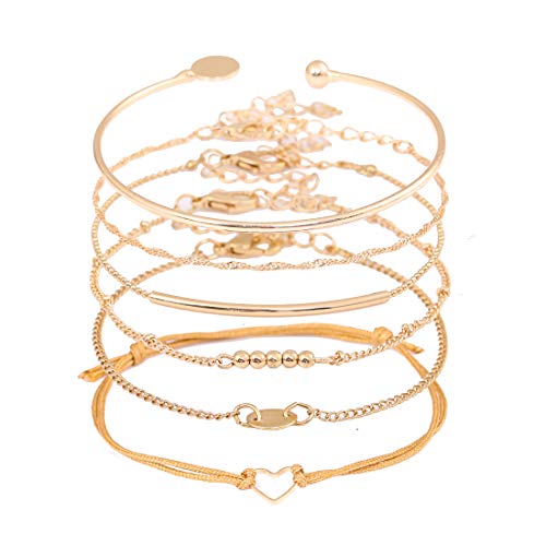 {"about_product": ["【Muti Layer Design】This dainty bracelet set features 6 different style ,a stretch sliver bracelet bangle cuff; a handmade rope bracelet with hollow heart-shape pendant; a seed beaded bracelet chain with bar pendant; a station bracelet ;a Singapore chain and a delicate link bracelet with coin pendant. This bracelet set is a great value and offer more choices for your daily wearing", "【Charms Decoration】Our unique expandable bangle bracelet set multiple style give you a boho chic, making it a perfect piece to complement your standout look. You can choose to wear it alone or stacked with other bangles. One order allows you to wear different bracelets every day and enjoy the joy of collocation.", "【Ideal Accessory】This jewelry set suitable for many occasions, good match for daily wear. Add a hint of celestial glimmer to your everyday look, Adjustable length with lobster clasp closure", "【ATTENTION】Approx .Measurements: 9 inches each,very cute and dainty. Limit exposure to water, perfume or body cream.", "【NOTE】Any problem, just contact us"], "product_description": null, "product_information": {"ASIN": "B07F58P8VK", "Department": "womens", "Manufacturer": "XOCARTIGE", "Customer Reviews": "4.1 4.1 out of 5 stars \n\n (6,228)", "Product Warranty": "For warranty information about this product, please click here", "Best Sellers Rank": "#4,431 in Clothing, Shoes & Jewelry (See Top 100 in Clothing, Shoes & Jewelry) #180 in Girls' Fashion", "Date First Available": "June 30, 2018", "Is Discontinued By Manufacturer": "No"}, "product_details": {"Gem type": "No gemstone", "Material": "Metal", "Chain type": "Link Chain", "Clasp type": "Lobster Claw", "Metal type": "Zinc", "Item type name": "Bracelet"}}