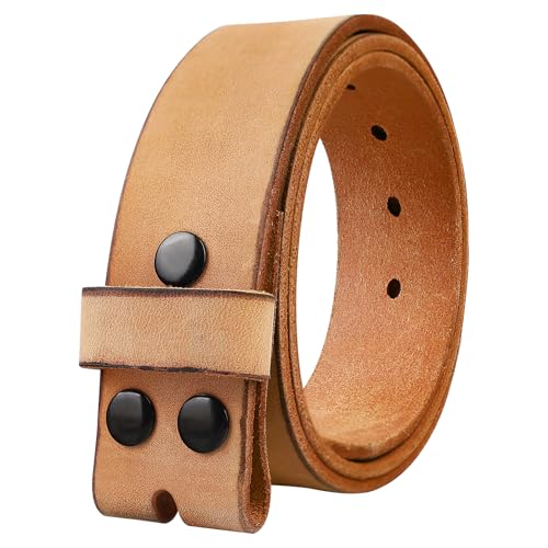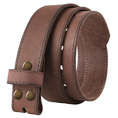 NPET Men's Full Grain Leather Belt Vintage Distressed Style with Snap-On Strap 1 1/2" Wide without Buckle