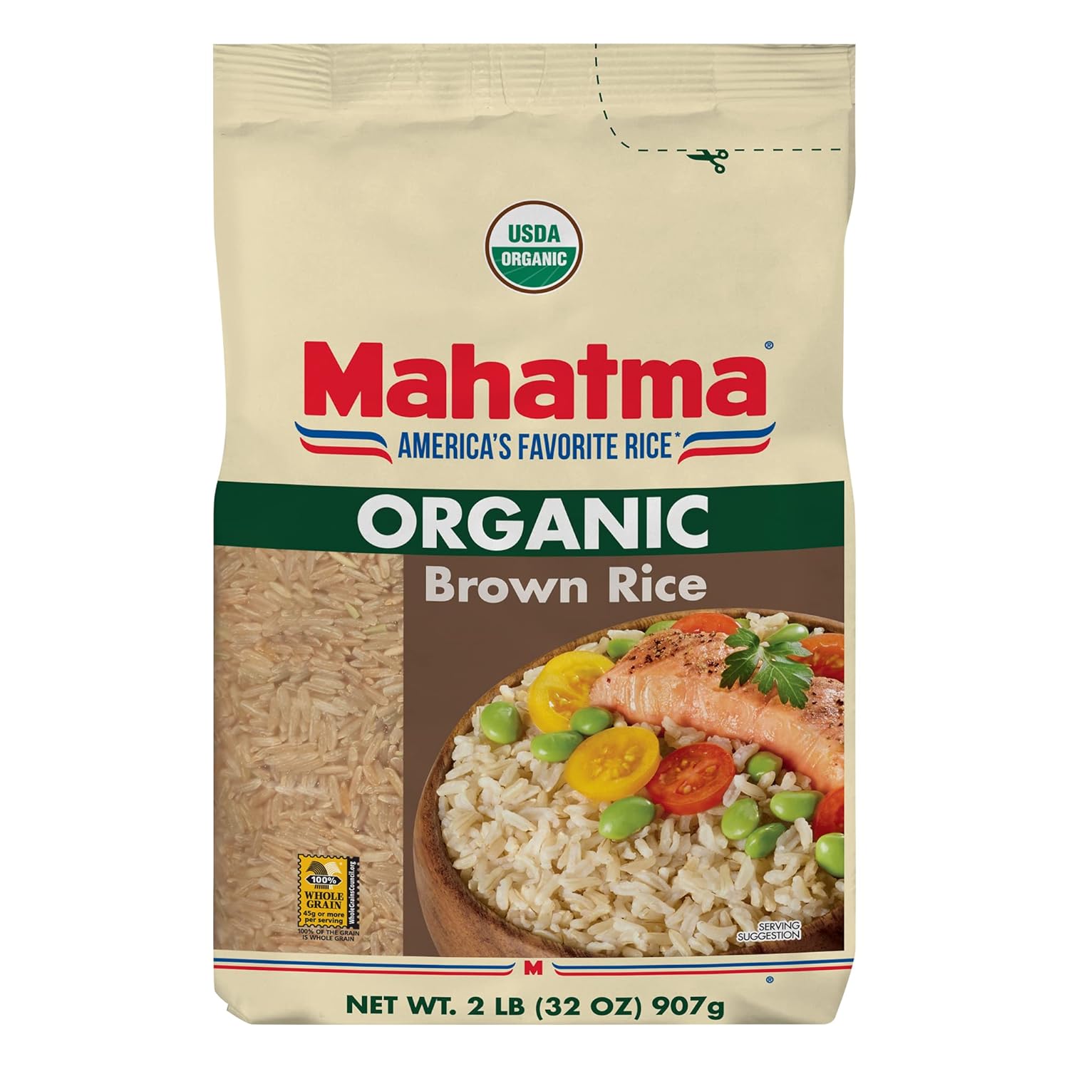 {"about_product": ["REIMAGINE TRADITIONAL RICE: Craft your favorite recipes in a whole new way with this brown Mahatma organic rice, a classic that's now more sustainable than ever. Unlike organic white rice, brown rice still has the rice germ and bran layer intact, giving it a nutty flavor and a slightly chewy texture.", "EASY RICE: Prepare rice according to package directions. On a stovetop, simmer 1 cup of rice in 2 1/2 cups of water with olive oil or salt for 45 minutes or until water absorbs. Alternatively, microwave 1 cup of rice in 2 cups of water on HIGH for 5 minutes, then at 50% power for 15 minutes.", "TRUSTED VEGAN FOOD: Our delicious 20-minute rice is 100% vegan and vegetarian. It's free from gluten, MSG, and preservatives, verified by the Non-GMO Project, and USDA Organic Certified with more sustainable farming practices. It's even kosher, so you can gather everyone you love around your table!", "REWRITE RECIPES: Start your day with a whole-grain breakfast bowl. Try a rice salad, soup with rice, or veggie-loaded rice lettuce wraps for lunch. Craft flavorful recipes like our Brown Rice Pilaf alongside a roast chicken. You can even create desserts like rice pudding or chocolate hot cakes!", "HEART & SOUL OF THE FAMILY TABLE: Mahatma rice is for all who give so much of themselves to provide their families with the best life possible. For close to 100 years, we’ve poured our heart and soul into every bag of quality rice and grains—so you can enjoy it with those you love."], "product_description": "At Mahatma Rice, we unite cultures and flavors with rice that cooks up light and fluffy. Reimagine traditional recipes and kickstart your culinary exploration with our 2-pound bag of Organic Brown Rice. In contrast to traditional organic white rice, brown rice is de-hulled to remove the outer shell but still has the rice germ and bran layer intact, giving it a nutty flavor and slightly chewy texture. Each grain cooks up separately for tantalizing results.\n\nThe possibilities for cooked rice are endless, whether you're blending a breakfast smoothie, stirring up rice tortilla soup for lunch, combining rice with meat or a vegan protein for a hearty dinner plate, or preparing a sweet, satisfying rice pudding for dessert. Easily prepare this rice bag according to the package directions in only 1 hour on a stovetop or 20 minutes in the microwave. You can gather the entire family for this tasty bulk rice, even those with dietary considerations, as it's gluten-free, MSG-free, preservative-free, verified by the Non-GMO Project, and USDA Certified Organic. Our rice is also kosher, vegan, and vegetarian, so everyone can dig into your delicious recipes for a culinary bonding experience they will all enjoy!\n\nAt Mahatma, we know about good rice. From aroma and texture to delicious flavor, our rice has it all! We’ve been trusted by American families for close to 100 years by providing consistent quality and flavor in every bag. Mahatma Rice is easy to prepare, inspiring you to perfectly blend ingredients, cultures, and traditions to create diverse dishes with boundless flavor that make Mahatma a recipe for success.", "product_information": {"UPC": "017400140816", "ASIN": "B07F2TQ6ZZ", "Units": "32 Ounce", "Manufacturer": "Riviana Foods Inc.", "Customer Reviews": "4.6 4.6 out of 5 stars \n\n (1,845)", "Best Sellers Rank": "#8,609 in Grocery & Gourmet Food (See Top 100 in Grocery & Gourmet Food) #5 in Dried Brown Rice", "Item model number": "904071SU", "Product Dimensions": "5.13 x 2.83 x 6.93 inches; 2 Pounds"}, "product_details": {"Brand": "Mahatma", "Unit Count": "32 Ounce", "Item Weight": "2 Pounds", "Number of Items": "1", "Item Package Quantity": "1"}}