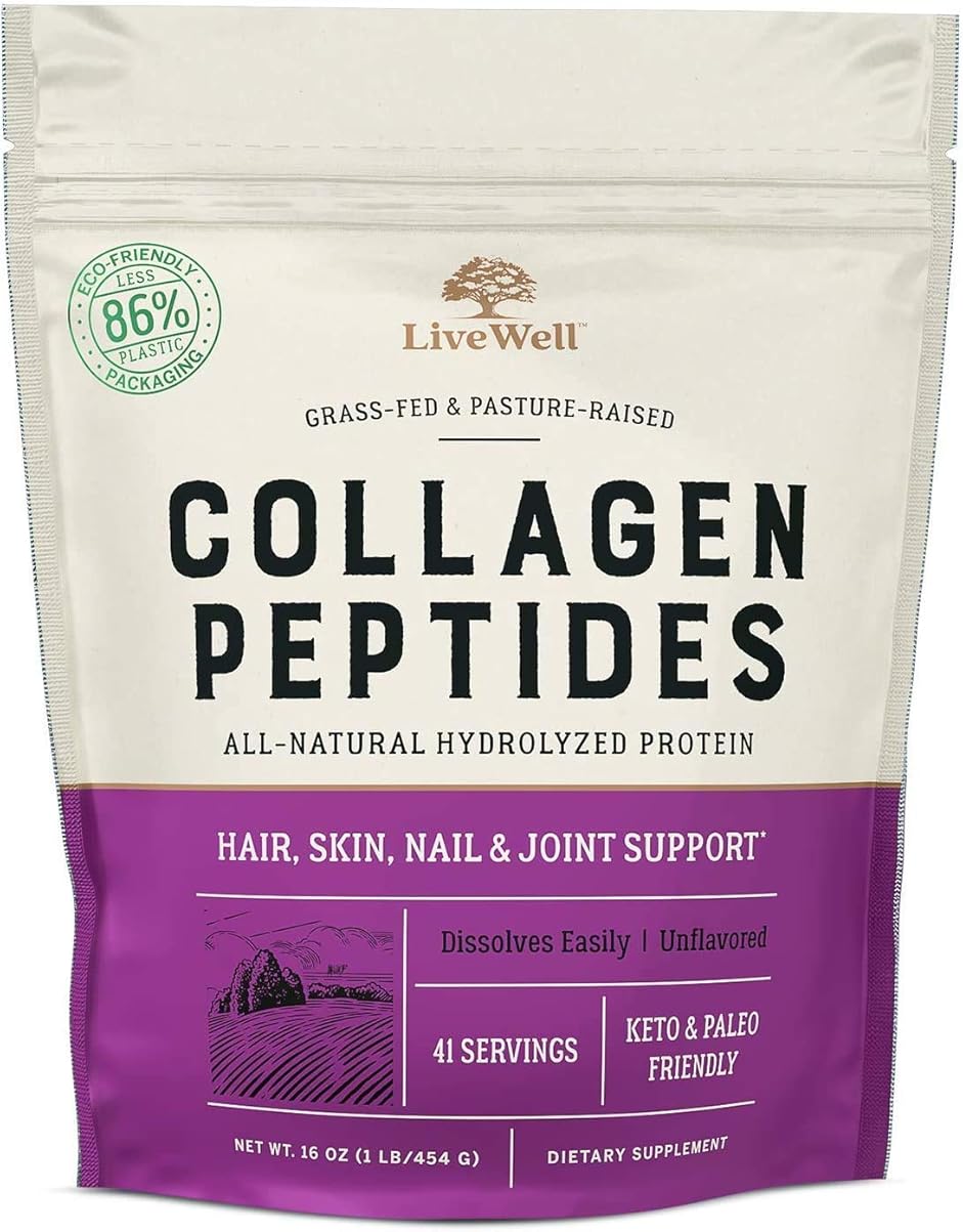 {"about_product": ["Replenish Your Skin, Hair, and Nails — Collagen peptides for women can help revitalize skin, strengthen hair, and renew nails.* These benefits contribute to a more youthful appearance you’ll love.*", "Rejuvenating Power — When you look healthier, you take years off your appearance.*", "Natural Taste — While some customers take no notice, since everyone's palate is different, the Live Conscious Collagen Peptides naturally-sourced formula may have a mild taste that you would most prefer adding to your favorite smoothie.", "Premium Ingredients — For the best results, you need the best ingredients. LiveConscious labs uses hydrolyzed collagen peptides from bovine sources certified as grass-fed and pasture-raised."], "product_description": null, "product_information": {"ASIN": "B07GY22VLW", "Manufacturer": "Live Conscious", "Customer Reviews": "4.5 4.5 out of 5 stars \n\n (73,388)", "Best Sellers Rank": "#284 in Health & Household (See Top 100 in Health & Household) #4 in Collagen Supplements", "Item model number": "Collagen Peptides", "Product Dimensions": "8.19 x 3.62 x 10.2 inches; 1 Pounds", "Date First Available": "October 12, 2018"}, "product_details": {"Brand": "Live Conscious", "Flavor": "Unflavored", "Diet Type": "Gluten Free", "Item Form": "Powder", "Unit Count": "16.0 Ounce", "Item Weight": "16 Ounces", "Product Benefits": "Skin Care", "Age Range (Description)": "Adult", "Primary Supplement Type": "Collagen", "Item dimensions L x W x H": "8.19 x 3.62 x 10.2 inches"}}