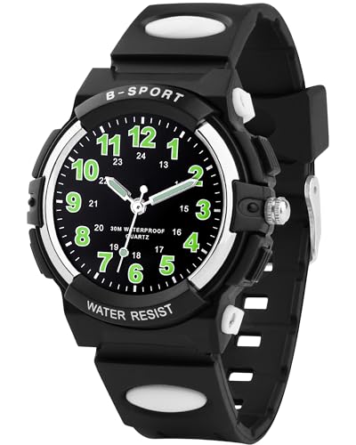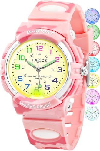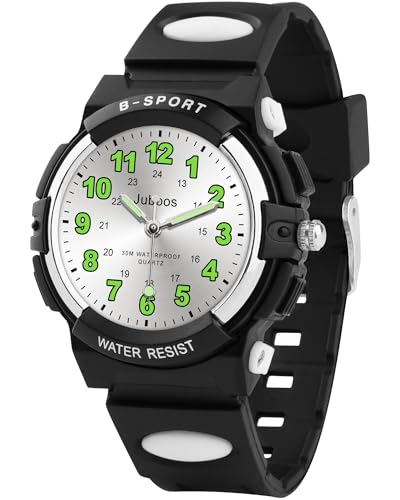 {"about_product": ["Precise Time: Kids watch for boys girls use Japanese-Quartz Movement to provide precise and accurate time keeping; top quality battery to provide continous power for watch to long lasting using", "Time Teaching Watch: Analog watch for kids clear and large dial, easy to read, traditional children's analog watch allows children to learn to see the time and develop their sense of time, which is important for their education", "Waterproof Analog Watch for Kids: 30M/98FT waterproof, suitable for daily waterproof, such as hand washing, rain, etc. Be careful not to press any buttons or dive in the water as it will damage the waterproof rubber ring of the watch", "Comfortable to Wear:Adjustable TPU strap, the bottom of the watch has a wrist pad to provide children with a comfortable and safe to wear, simple and stylish watch for boys girls, suitable for children aged 5-8 9-14 years old to learn time", "Good Presents: Juboos kids wirst watch comes with beautiful present packaging, making it even more suitable as a present for childrenThis simple time teaching watch is fit for kids at school or for leisure and sports"], "product_description": null, "product_information": {"ASIN": "B07J696ZN4", "Batteries": "1 9V batteries required. (included)", "Department": "girls", "Manufacturer": "Juboos", "Customer Reviews": "4.4 4.4 out of 5 stars \n\n (2,864)", "Product Warranty": "For warranty information about this product, please click here", "Best Sellers Rank": "#9,474 in Clothing, Shoes & Jewelry (See Top 100 in Clothing, Shoes & Jewelry) #10 in Girls' Wrist Watches", "Item model number": "412", "Package Dimensions": "10.12 x 2.24 x 0.75 inches; 1.12 ounces", "Date First Available": "October 11, 2018", "Is Discontinued By Manufacturer": "No"}, "product_details": {"ASIN": "B07J696ZN4", "Batteries": "1 9V batteries required. (included)", "Department": "girls", "Manufacturer": "Juboos", "Customer Reviews": "4.4 4.4 out of 5 stars \n\n (2,864)", "Product Warranty": "For warranty information about this product, please click here", "Best Sellers Rank": "#9,474 in Clothing, Shoes & Jewelry (See Top 100 in Clothing, Shoes & Jewelry) #10 in Girls' Wrist Watches", "Item model number": "412", "Package Dimensions": "10.12 x 2.24 x 0.75 inches; 1.12 ounces", "Date First Available": "October 11, 2018", "Is Discontinued By Manufacturer": "No"}}