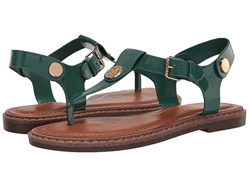 {"about_product": ["Warm up into the season with the Tommy Hilfiger® Bennia sandal.", "Faux-leather upper.", "Adjustable buckle at ankle.", "Open-toe design with brand logo detail at instep.", "Synthetic lining. Lightly padded footbed. Rubber outsole. Imported. Measurements: Heel Height: 1⁄2 in Weight: 7 oz Product measurements were taken using size 8.5, width M. Please note that measurements may vary by size. Weight of footwear is based on a single item, not a pair."], "product_description": "Tommy Hilfiger's Bennia sandals boast an upstyled thong silhouette, secured with a back strap and side buckle. Metallic monogrammed hardware is the perfect finishing touch.", "product_information": {"ASIN": "B07ZR3Z1WD", "Department": "womens", "Manufacturer": "Tommy Hilfiger", "Customer Reviews": "4.6 4.6 out of 5 stars \n\n (5,232)", "Best Sellers Rank": "#14,943 in Clothing, Shoes & Jewelry (See Top 100 in Clothing, Shoes & Jewelry) #5 in Women's Flat Sandals", "Item model number": "409", "Product Dimensions": "13.9 x 7.9 x 4.8 inches; 1.5 Pounds", "Date First Available": "March 15, 2019", "Is Discontinued By Manufacturer": "No"}, "product_details": {"Origin": "Imported", "Fabric type": "100% Synthetic", "Sole material": "Ethylene Vinyl Acetate", "Outer material": "Synthetic"}}