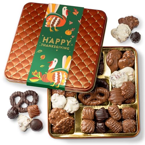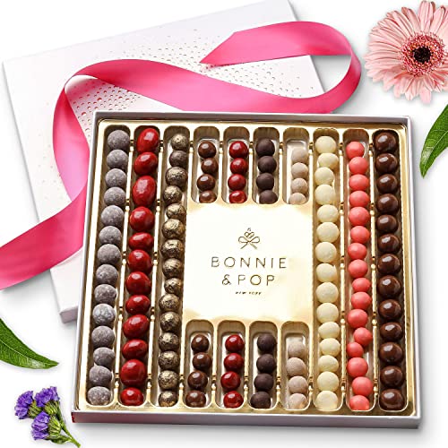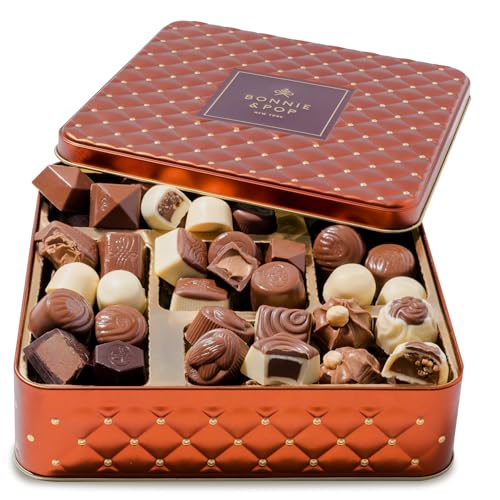 {"about_product": ["AN INDULGENT SELECTION OF OUR 15 BEST SELLING CHOCOLATES: Gift baskets arrive with more than a pound of assorted milk, dark and white truffles. Flavors include: Milk Butter Pecan Patties, Cashew Clusters, Pretzel Clouds, Pecan Snappers, Sea Salt Caramels, English Toffee, Peppermint Patties, Bavarian Pretzels, Double Silk Truffles, Coconut Haystacks, and Peanut Clusters.", "CELEBRATE JOY with this elegant yet affordable gift. This little treasure has delighted recipients ranging from employees and employers to parents and children. Who doesn’t love a delicious box of chocolate? It’s versatile packaging works for multiple occasions like Christmas, Hanukkah, Valentine’s Day, Easter, Birthdays, Sympathy or to simply say Thank you.", "WRAPPED AND LABELED Each chocolate is individually wrapped to promote comfortable sharing and a fresh experience, even if you (try to) save some for later. Kosher Dairy", "ELEGANT GIFTING Our Bonine and Pop embellished tin makes this an elegant gift that will be a keepsake long after the occasion and snacks are gone.", "ATTENTION: Please remember to Check the box labeled “This is a gift” in your cart or at checkout and write a personalized message."], "product_description": null, "product_information": {"UPC": "600300664249 850030497147", "ASIN": "B07K38QBKQ", "Units": "1.00 Count", "Manufacturer": "Bonnie and Pop", "Customer Reviews": "4.5 4.5 out of 5 stars \n\n (13,817)", "Best Sellers Rank": "#22 in Grocery & Gourmet Food (See Top 100 in Grocery & Gourmet Food) #1 in Candy & Chocolate Gifts", "Item model number": "fbaallchobrown", "Product Dimensions": "9 x 9 x 2.5 inches; 2.06 Pounds", "Is Discontinued By Manufacturer": "No"}, "product_details": {"Brand": "BONNIE AND POP", "Flavor": "Chocolate, Peppermint, Peanut Butter, Pecan, Cashew, Caramel", "Item Weight": "33 Ounces", "Number of Items": "1", "Package Information": "Basket, Box, Can"}}