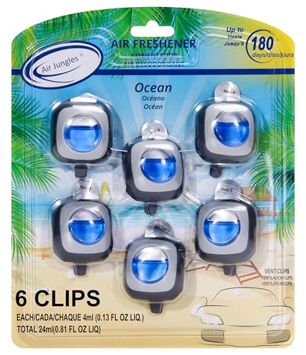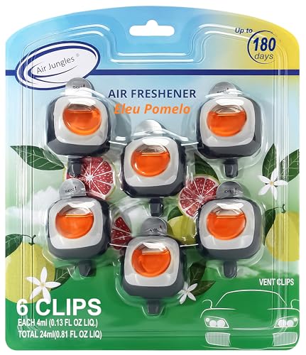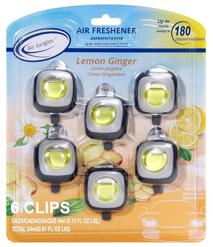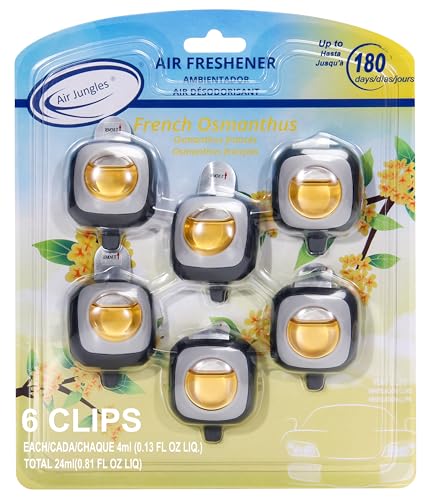 {"about_product": ["Designed to refresh your car interior and help reduce common odors from food, pets, smoke, and everyday use. Provides a pleasant, clean-smelling atmosphere for a more enjoyable ride", "Features a 3-level scent control so you can choose your preferred fragrance intensity. The car air freshener vent-clip design attaches securely and fits most standard vehicle air vents for simple, convenient use; A great car accessory", "Each vent clip offers natural fragrance for up to 30 days. With 6 clips included, you can enjoy ongoing freshness for 180 days, helping keep your car interior smelling consistently pleasant", "Formulated with a blend of essential and fragrance oils for a comfortable scent experience", "Ideal gift for a new car owner for men and women; Fragrance oil can cause damage to surfaces, wipe up spills immediately"], "product_description": null, "product_information": {"ASIN": "B07LGLHHZK", "Brand": "Air Jungles", "Item Weight": "3.84 ounces", "Manufacturer": "Air Jungles", "Best Sellers Rank": "#233 in Automotive (See Top 100 in Automotive) #19 in Automotive Air Fresheners", "Item model number": "AJC001", "Product Dimensions": "9 x 8 x 1 inches", "Date First Available": "December 18, 2018", "Manufacturer Part Number": "AJC001", "Is Discontinued By Manufacturer": "No"}, "product_details": {"Brand": "Air Jungles", "Color": "Honey Peach", "Scent": "Honey Peach", "Item Form": "Pod", "Item dimensions L x W x H": "9 x 8 x 1 inches"}}