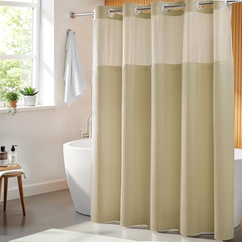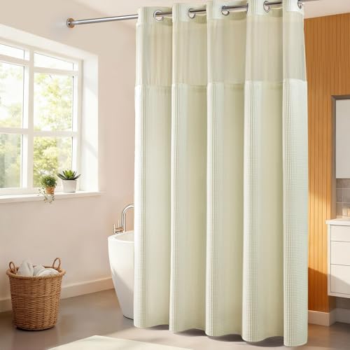{"about_product": ["This shower curtain designed with \"Split Rings\" that let you hang them easily. No need to buy hooks and no need to remove the rod", "Package Included: 1 Shower curtain and 1 fabric snap-on replacement Liner", "Hotel Quality: The shower curtain and liner are made with high quality Fabric, 200gsm heavy weight to keep it in place. Water repellent treatment can repel the water inside tub", "Measures: 71\" width by 74\" length fits your standard sized bathroom, snap in liner is 70\" x 54\" (WxL)", "Water Repellent:The high-quality material used for this shower curtain is water-repellent, effectively preventing water splashes and keeping your bathroom floor dry"], "product_description": null, "product_information": {"UPC": "741025591486", "ASIN": "B07MPP7JQR", "Size": "71\"W x 74\"L (Pack of 1)", "Brand": "River Dream", "Color": "White", "Style": "Contemporary", "Theme": "Solid", "Opacity": "Semi-sheer", "Pattern": "Waffle Weave", "Seasons": "All Season", "Material": "Cotton Blend", "Room Type": "Bathroom", "Top Style": "Grommet", "Model Name": "Waffle Weave Shower Curtain Wtih Snap in Liner", "Unit Count": "1.0 Count", "Weave Type": "Waffle", "Fabric Type": "Shower Curtain: 35% Cotton 65% Polyester Snap in Liner: 100% Polyester", "Item Weight": "2.49 pounds", "Curtain Form": "Shower Curtain", "Manufacturer": "River Dream", "Hanging Method": "Grommet", "Package Weight": "1.13 Kilograms", "Number of Items": "1", "Special Feature": "Magnets, Sheer Window, Snap-in Liner, Split Ring", "Best Sellers Rank": "#30,697 in Home & Kitchen (See Top 100 in Home & Kitchen) #49 in Shower Curtain Sets", "Item model number": "RG-05", "Lining Description": "Polyester Lining", "Product Dimensions": "74\"L x 71\"W", "Included Components": "Liner", "Date First Available": "January 3, 2019", "Indoor/Outdoor Usage": "Indoor", "Age Range (Description)": "Adult", "Product Care Instructions": "Machine Wash", "Specific Uses For Product": "Decorative", "Recommended Uses For Product": "Indoor", "Is Discontinued By Manufacturer": "No"}, "product_details": {"Brand": "River Dream", "Color": "White", "Opacity": "Semi-sheer", "Material": "Cotton Blend", "Product Dimensions": "74"L x 71"W"}}
