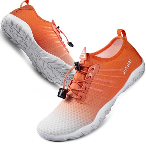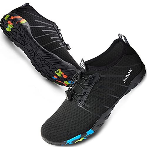 {"about_product": ["Breathable & Comfortable Design: Soft Mesh Fabric & Sock-Like Comfort, Stretchy lightweight upper molds to feet for all-day comfort. Our Water Socks enhanced airflow prevents sweat buildup during surfing, swimming, snorkeling, or beach sports.", "Non-Slip Water Shoes for Rough Terrains:Natural Rubber Sole with Deep Treads, Superior grip on wet rocks, moss, and sand. Shields feet from sharp shells, hot surfaces, and fishing hazards—ideal for fishing, water hiking, rafting and lake adventures.", "Quick-Dry Swim Shoes with Drainage Holes: 360° Drainage System, Water drains instantly through soles and insoles. The air-mesh fabric dries faster than regular pool shoes—perfect for diving, wakeboarding, canyoneering, cruise travel and water aerobics.", "Secure Fit for Land & Water Sports: Adjustable Elastic Lock Laces, Custom tension in strong currents. Ensures stability for sailing, windsurfing, kayaking, or parasailing. Easy slip-on neckline fits men, women, and kids—no hassle for vacation trips.", "Versatile Beach Shoes for Outdoor Activities: Multi-Color Unisex Design, from snorkeling in lakes to creek trips. Durable aqua shoes protect feet in sand, surf, and trails—essential for walking, jogging, camping, gardening, and waterpark adventures."], "product_description": "SIMARI WATER SHOES \nAre you looking for outstanding and comfortable water shoes for the beach trip? \nWe offer you different colours to choose from. \nWe also have many different styles and designs! \nWe are sure that you will find something you like in our shop. \nIntroduction of SIMARI water shoes: \nThe soles are made of Ruber materials with excellent air permeability and good slip resistance. And the upper material is made of breathable and elastic mesh material with good breathability and quick drying. \nUnique sole design, ergonomically designed, provides great traction for all surfaces, unlike other shoes, shock absorbing performance cushioning separate from protective toes. \nFast draining and cross ventilation, provides excellent flexibility and comfort to make you feel free and comfortable when wearing. \nEasy to carry when you go on holiday, water sports, diving, water park, water aerobics classes, rafting, through the waterfall, driving, car washing, etc. \n\nNote: \nPlease rinse with clean water, store in a ventilated place to dry. \nDo not place it on the fire to dry it. \nRoasting may cause the shoes to come out of the shape and wire side.", "product_information": {"ASIN": "B0CLY52CY1", "Department": "womens", "Manufacturer": "SIMARI", "Customer Reviews": "4.5 4.5 out of 5 stars \n\n (27,668)", "Product Warranty": "For warranty information about this product, please click here", "Best Sellers Rank": "#2,194 in Clothing, Shoes & Jewelry (See Top 100 in Clothing, Shoes & Jewelry) #4 in Men's Water Shoes #5 in Women's Water Shoes", "Item model number": "UK-WP001", "Product Dimensions": "5 x 5 x 0.7 inches", "Date First Available": "January 7, 2019"}, "product_details": {"Origin": "Imported", "Fabric type": "Mesh", "Sole material": "Rubber", "Fur description": "Lightweight & Breathable & Flexible & Protective"}}