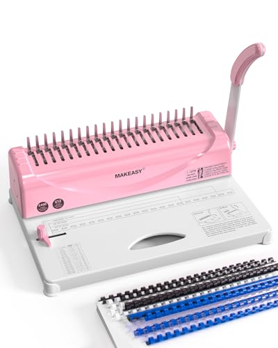 {"about_product": ["【Great Value for Money】Our binding machine comes with 1 Box of 3/8'' black PVC comb binding spines(for 50-60 sheets binding capacity)", "➤Max binding capacity: 400 sheets of paper(with 2'' comb binding spines, not included in package). ➤Max punch capacity: 10-12 sheets of printing paper(paper thickness≤80g(20lb) ), 2 sheets of 230g(≤85lb) cover/textured paper, 1 sheet of 5-12mil PVC cover", "【Humanized Design, Light but sturdy】Durable metal construction ensures long-lasting use. ➤Tips: ①This binding machine has an oiled cutting blade to protect the punch die from rusting. Notice: ②To avoid staining important documents when punching, please use test cardboard first to clean the blades. ③Before punching holes each time, please use tools such as an art knife to clean the paper scraps inside the hole punch", "【Easy and Safe to Use】Manual punching and binding operation only require 2 steps, with a low force handle that simplifies punching and non-slip feet for stability. ➤TIPS: First of all, Please install the handle 90 degrees perpendicular to the tray, otherwise there is no way to activate the punch function; When pressing the handle to punch holes, please press the handle to the bottom in one go, DO NOT pause halfway, so as not to cause a paper jam", "【Marks of A4/A5/Letter Size & Adjustable Edge Guide】Our upgraded comb binding machine is suitable for Letter Size (19 holes), A4 Size (21 holes), and A5 Size (15 holes), with an enhanced accuracy edge guide from 3mm to 5mm for pinpoint punching", "【Strict Quality Control 】Every batch of our binding machine undergoes strict quality control and testing before packing, and our friendly and reliable customer service team is available 24/7 to assist you"], "product_description": null, "product_information": {"ASIN": "B07N2HC76V", "Brand": "MAKEASY", "Color": "Silver", "Sheet Size": "LTR/A4/A5/Other", "Item Weight": "8.2 pounds", "Manufacturer": "MAKEASY", "Material Type": "Metal", "Best Sellers Rank": "#5,405 in Office Products (See Top 100 in Office Products) #1 in Binding Machines", "Item model number": "M-BM-FR-1.0Version", "Product Dimensions": "16.93 x 12.2 x 7.09 inches", "Date First Available": "January 23, 2019", "Manufacturer Part Number": "M-Binding Machine", "Is Discontinued By Manufacturer": "No"}, "product_details": {}}