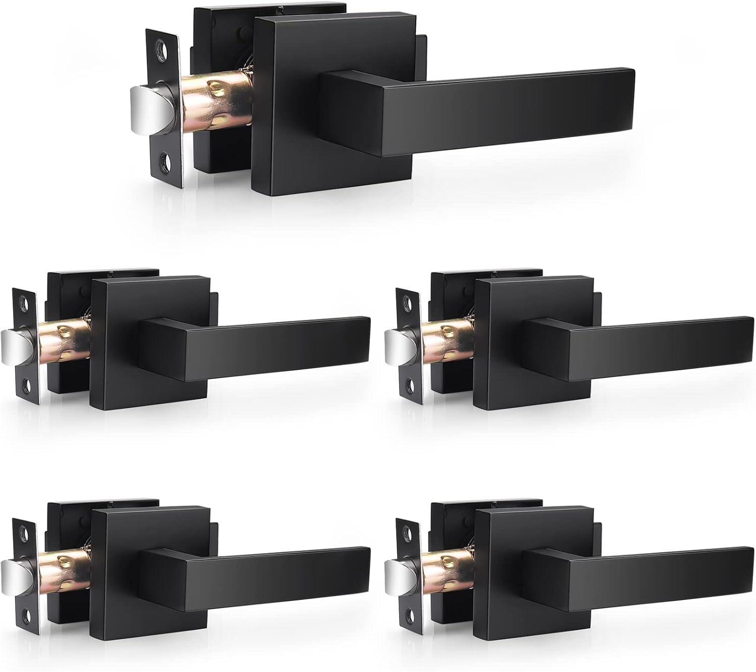 {"about_product": ["MATERIAL: Made of Heavy Duty Zinc Alloy and Metal; Matte Black Finish; Passage Door Lever without Keys", "【Specifications】: Heavy Duty & Durable; Material: Zinc Alloy; Finished Colour: matte black Finish; Strike Plates: 2 kind of plates for standard doors", "【Reversible Leverset】: Fully reversible contemporary leverset can be installed on both left and right handed doors with an adjustable latch to fit all standard door size", "【Keyless Passage Door Handle】: Passage door Lever without keys could be opened from inside and outside without keys. This passage door lever is best used for the room of easy-opening needs, like closets, hallway, child's room or study, where the easy-opening and non-locking needs is needed", "【Dimensions】: This passage door locks comes with an adjustable latch 2-3/8\" or 2-3/4\"(60mm or 70mm) to fit all standard doors from 1-3/8\" to 1-3/4\" (35mm-45mm) thick. Lever Length: 4.86\" (123mm), Rosette Diameter: 2.56\" (65mm). The latch plate is square, and can't be removable", "【Easy to Install】: It easily installs in minutes with just a screwdriver, and easy to swap out with all accessories included (Reversible lever fits both right and left handled doors)"], "product_description": null, "product_information": {"ASIN": "B07NVBVRY3", "Size": "5 Pack", "Brand": "Probrico", "Color": "Black", "Finish": "Stainless Steel", "Pattern": "Contemporary Style", "Material": "Stainless Steel", "Lock Type": "No Lock", "Head Style": "Philips", "Item Depth": "1 inch", "Metal Type": "Zinc Alloy", "Unit Count": "5 Count", "Item Weight": "2.2 pounds", "Part Number": "DL01BKPS-5", "Manufacturer": "Probrico", "Switch Style": "Rocker switch", "Certification": "ANSI Grade 3", "Exterior Finish": "Stainless Steel", "Handle Material": "Zinc", "Number of Items": "5", "Special Feature": "Easy to Install", "Hand Orientation": "Universal", "Number Of Pieces": "5", "Special Features": "Easy to Install", "Best Sellers Rank": "#15,603 in Tools & Home Improvement (See Top 100 in Tools & Home Improvement) #33 in Door Levers", "Item model number": "DL01", "Product Dimensions": "1\"L x 1\"W", "Batteries Included?": "No", "Batteries Required?": "No", "Included Components": "Installation instructions and tools", "Projection Distance": "4.86 Inches", "Date First Available": "February 17, 2019", "Item Package Quantity": "5", "Specific Uses For Product": "Professional", "Handle Attachment Mechanism": "Simple, Non-locking"}, "product_details": {"Brand": "Probrico", "Color": "Black", "Style": "Passage", "Material": "Stainless Steel", "Product Dimensions": "1"L x 1"W"}}