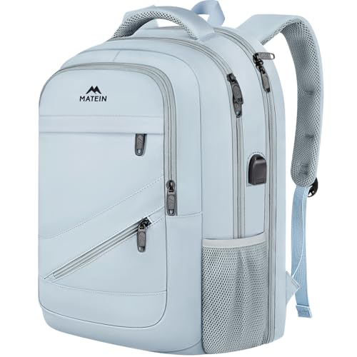 {"about_product": ["Travel Gifts Idea: 17 inch laptop backpack for men is the great gifts choice for college teachers school students. Work commute gifts designed for adult men or women as Christmas gifts, office tech gifts, travel gifts or birthday gifts. Special holiday gifts for him or her, your husband, wife, son, daughter, father, mother and friends coworker", "TSA Approved Backpack: Laptop compartments' tsa function is designed for airplane flight travel. large laptop travel backpack can unfold 90 to 180 degrees, making the laptop bookbag 17 inch get through airport security checkpoint more easily and quickly. This 17 inch laptop backpack is large enough for daily office work, weekend getaway, overnight trip, college school, business travel", "USB Charging Port & Luggage Sleeve: 17 inch computer backpack for men with external USB charger port and built in charging cable can conveniently charge your phone, tablet and other electronic devices while walking or hiking. Featuring the trolley sleeve on large backpack for men breathable back, business traveler could fit laptop backpack men right on the luggage suitcase, which free your hands", "Multiple Pockets: Slim backpack for men has a separated laptop compartment for 15.6, 16, 17 inch notebook and tablet. Main compartment is roomy for office work files, travel clothes, school books. Front compartment storage daily tech accessories. Side mesh pockets hold water bottle or umbrellas. Back anti theft pocket protect wallets, passport. Ensuring the zipper is fully down with the puller at the bottom. This keeps your belongings safe from unexpected openings when you're walking", "Water Resistant & Multipurpose: Laptop backpack 30 L is made of water resistant 600D polyester fabric. Comfortable handle and adjustable breathable shoulder straps, which perfects for 3 days business short trip, professional office work backpack or outdoor activities, backpacks for college men women. Recommended age range: 5 years old and up"], "product_description": null, "product_information": {"ASIN": "B07QN9NPKN", "Brand": "MATEIN", "Color": "Grey", "Series": "103500gry 17 Inch Laptop Backpack", "Department": "Laptop Travel Backpack for Men Women", "Item Weight": "1.98 pounds", "Manufacturer": "Everyworth", "Best Sellers Rank": "#7 in Laptop Backpacks", "Item model number": "103500GRY", "Product Dimensions": "14 x 19 x 7.8 inches", "Date First Available": "June 12, 2019", "Item Dimensions LxWxH": "14 x 19 x 7.8 inches", "Standing screen display size": "17 Inches"}, "product_details": {}}