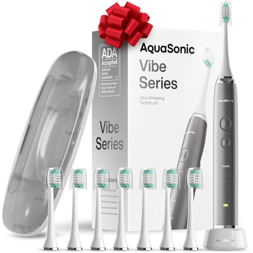 {"about_product": ["40,000 VPM Smart Toothbrush – Beauty, brains and power. The Vibe Series is a world class modern electric toothbrush packed with the most up to date technology. It features an ultra-powerful and industry leading motor producing 40,000 vibrations per minute, lithium-ion battery, ultra-fast wireless charging, 4 mode operation, smart vibration timers, 8 DuPont engineered brush heads, and a custom travel case; all with a sleek, ultra-slim, lightweight and IPX7 rated waterproof body.", "Accepted by the American Dental Association (ADA) Council on Scientific Affairs – We put our money where your mouth is. Investing in premium oral care technologies has earned the Vibe Series the prestigious ADA seal of approval. It has shown efficacy in removing plaque and helping to prevent and reduce gingivitis. Vibe Series goes beyond just cleaning teeth – it provides complete oral care with unique modes that include one for whitening and polishing teeth and one for improving gum health.", "8 DuPont Brush Heads & Travel Case Included - Every Vibe Series toothbrush comes with 8 brush heads engineered by world famous DuPont; a world leader in quality & materials science. Each brush head lasts 3 months so 8 will last for 2 years. Also included is a convenient custom hard shell travel case made of BPA-free plastic with space for two brush heads. Vibe Series can last 4 full weeks (2 min/2x a day) on a full charge so it's perfect for on the go travel with the included travel case.", "Modern Tech For Complete Oral Care - The Vibe Series brings toothbrushes into modern times with its built in enhanced features. Ultra fast wireless charging (forget cheap USB charging), 4 distinct brushing modes and a smart vibrating notification timer are some of the enhanced features built in to the sleek waterproof and stunningly beautiful satin rose gold handle.", "What's in the Box – 1 Satin Rose Gold Smart Toothbrush, 8 DuPont brush heads, 1 custom travel case, user manual, warranty card.."], "product_description": null, "product_information": {"ASIN": "B07R8WGDKF", "Batteries": "1 Lithium Ion batteries required. (included)", "Manufacturer": "Pure Daily Care", "Customer Reviews": "4.6 4.6 out of 5 stars \n\n (32,947)", "Best Sellers Rank": "#307 in Health & Household (See Top 100 in Health & Household) #2 in Ultrasonic Toothbrushes", "Item model number": "VK-UX1H-ZRU8", "Package Dimensions": "8.62 x 3.5 x 2.83 inches; 14.82 ounces", "Date First Available": "April 26, 2019"}, "product_details": {"Brand": "Aquasonic", "Power Source": "Battery Powered", "Special Feature": "Brushing Timer, Lightweight, Wireless Charging", "Age Range (Description)": "Adult", "Item Firmness Description": "Soft"}}