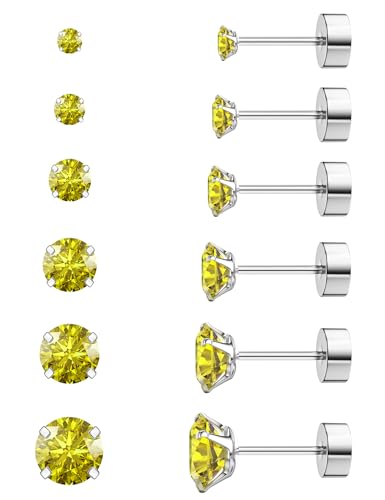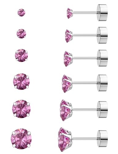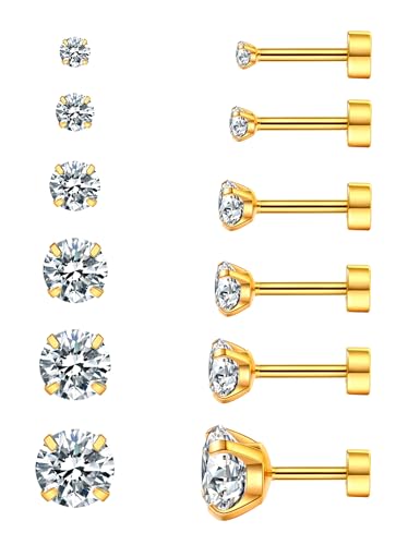 {"about_product": ["Material: Surgical steel earrings made of high quality surgical steel / AAA cubic zirconia, hypoallergenic, lead-free, rust-proof, non-fading. earrings for sensitive ears.", "Dimensions: cubic zirconia width 3,4,5,6,7,8mm,Gauge Size: 20G =0.8mm pin size: 11mm long, suitable for people over 18 years old, helix earrings and is easy to wear Effective against loss.", "Classic design: simple and elegant round cubic zirconia inlay, high-strength polishing, Overall fashion, personality, no matter what the season. Suitable for all adults, men and women, everyday wear or as a gift.", "Quantity and size: The earrings set contains 6 pairs of hypoallergenic earrings, a beautiful bow gift box, and a convenient small bag.", "Quality Assurance : If you have any questions about our products, please feel free to contact us and we will resolve your issue within 24 hours."], "product_description": "", "product_information": {"ASIN": "B0F2YN1F23", "Department": "womens", "Customer Reviews": "4.2 4.2 out of 5 stars \n\n (13,687)", "Product Warranty": "For warranty information about this product, please click here", "Best Sellers Rank": "#8,093 in Clothing, Shoes & Jewelry (See Top 100 in Clothing, Shoes & Jewelry) #5 in Girls' Stud Earrings #46 in Women's Stud Earrings", "Date First Available": "December 24, 2023"}, "product_details": {"Gem type": "Cubic Zirconia", "Material": "Hypoallergenic surgical steel", "Item width": "5 inches", "Metal type": "Hypoallergenic surgical steel", "Back Finding": "Screw Back", "Earring design": "Stud"}}