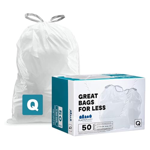 {"about_product": ["Perfect Fit for Code Q: Designed specifically for Code Q trash cans, these custom-fit trash bags ensure a snug, mess-free fit. No more overhanging or excess bag, keeping your trash can clean and neat at all times", "Durable & Tear-Resistant: Made from 1.2 Mil thick, high-quality plastic, these trash bags offer exceptional strength and durability, preventing rips and punctures even with sharp or heavy waste. Keep your space clean without worrying about leaks or tears", "Reinforced Drawstring Closure: Featuring a strong and reliable drawstring closure, these bags make removal a breeze. Simply pull the drawstrings tight for a secure, leak-proof seal, making carrying and disposal more convenient and hassle-free", "Affordable & Reliable: Plasticplace Custom Fit Trash Bags offer superior performance at a fraction of the cost of brand-name alternatives. Get the same level of quality and reliability without overspending, ideal for bulk use in kitchens, offices, or garages", "50 Count Pack: With 50 bags in each pack, you’ll have plenty of trash bags for long-term use. Ideal for busy households, offices, or commercial settings, these bags provide a reliable, cost-effective solution to your waste disposal needs"], "product_description": "Plasticplace Custom Fit Trash Bags are the ideal solution for your Code Q trash can, designed to fit perfectly without the hassle of overhangs. These trash bags provide a streamlined look while ensuring optimal functionality for waste disposal. With a capacity of 13-17 gallons, they are perfect for kitchen, office, and bathroom use, or any space requiring a heavy-duty liner. Crafted from 1.2 Mil thick material, these bags are built to last. The extra-thick plastic provides exceptional tear and puncture resistance, allowing you to dispose of sharp objects, heavy trash, and even yard waste with confidence. Unlike regular trash bags that may rip under pressure, Plasticplace bags are engineered to handle it all without a tear in sight. The unique reinforced drawstring closure offers easy handling and removal. Simply pull the drawstrings to tightly seal the bag, preventing any spills or leaks as you take it to the dumpster. This feature makes these trash bags ideal for quick, efficient waste disposal—whether it's in your kitchen, bathroom, office, or garage. A pack of 50 bags ensures long-lasting use, perfect for households or offices that need to stock up on dependable trash bags. The 13-17 gallon capacity makes them a versatile option, fitting a wide variety of trash cans, including the popular Code Q trash can. Plus, with the white color, you can easily see the contents of the bag, making sorting and recycling more efficient. Plasticplace Custom Fit Trash Bags are the cost-effective solution to expensive brand-name options. Enjoy superior strength, ease of use, and a perfect fit at a fraction of the price. Whether you're looking for durable trash bags for daily waste or for handling more demanding tasks, these bags deliver high-quality performance every time. For an eco-friendly, reliable, and affordable choice, choose Plasticplace Custom Fit Trash Bags for your Code Q trash can. Our commitment to quality ensures you’re getting a product you can count on for all your waste disposal needs.", "product_information": {"ASIN": "B07S4D95XK", "Department": "Waste Bag", "Manufacturer": "Plasticplace", "Customer Reviews": "4.7 4.7 out of 5 stars \n\n (5,291)", "Best Sellers Rank": "#8,958 in Health & Household (See Top 100 in Health & Household) #97 in Trash Bags", "Item model number": "simplehuman (x) Code Q Compatible", "Product Dimensions": "7.68 x 5.24 x 5.24 inches; 3.29 Pounds", "Date First Available": "May 22, 2019"}, "product_details": {"Brand": "Plasticplace", "Color": "White", "Scent": "Unscented", "Capacity": "17 Gallons", "Material": "Plastic", "Item Form": "Bag", "Unit Count": "50.0 Count", "Number of Items": "1", "Material Feature": "Heavy Duty", "Recommended Uses For Product": "Garbage Liners"}}
