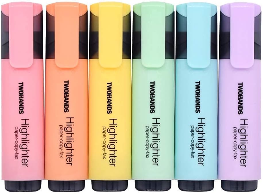 {"about_product": ["The soft, fashionable colors will give your work a subtle but stylish look, including Pink, orange, yellow, green, blue, purple.", "Quick-drying ink prevents smears and smudges.", "Highlighter with large ink reservoir for long marking.", "The two-line widths, 1mm + 5mm - ideal for highlighting texts of various sizes as well as for drawing lines of different thicknesses.", "They’re safe to use for any office worker and just about anyone."], "product_description": null, "product_information": {"ASIN": "B07SG54C76", "Size": "1 Count (Pack of 6)", "Brand": "TWOHANDS", "Color": "Pastel", "Ink Color": "Multicolor", "Line Size": "1 months", "Point Type": "Chisel", "Item Weight": "3.98 ounces", "Manufacturer": "TWOHANDS", "Material Type": "Plastic (Body), Felt (Tip)", "Number of Items": "6", "Best Sellers Rank": "#2,804 in Office Products (See Top 100 in Office Products) #39 in Liquid Highlighters", "Product Dimensions": "6.49 x 4.72 x 0.71 inches", "Date First Available": "May 30, 2019", "Manufacturer Part Number": "H2007"}, "product_details": {"Brand": "TWOHANDS", "Ink Color": "Multicolor", "Point Type": "Chisel", "Number of Items": "6", "Recommended Uses For Product": "Drawing"}}