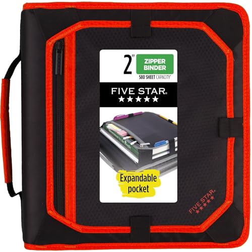 {"about_product": ["LASTS ALL YEAR. GUARANTEED! Guarantee is valid for one year from purchase or delivery date, whichever is longer. Does not cover misuse.", "Durable 2 Inch binder helps protect and secure your work and holds up to 380 sheets on 3 round rings, 5-tab expanding file holds up to 200 loose sheets, for 580 total sheet capacity, when using 15 lb filler paper", "Expansion panel on the outside of the binder allows you to store and access textbooks, notebooks and more without unzipping the binder", "Includes an interior gusseted pocket with hook and loop closure and a puncture-resistant, micro-mesh pocket with zipper closure.", "Full zipper closure and carrying handle allows you to be on the go. Measures 2-1/2\" x 12-3/4\" x 12\". Available in Black."], "product_description": "LASTS ALL YEAR. GUARANTEED! The Five Star 2 Inch Zipper Binder + Expansion Panel is durable enough to stand up to your busy schedule. The 2 Inch binder helps protect and secure your work and holds up to 380 sheets on 3 round rings, 5-tab expanding file holds up to 200 loose sheets, for 580 total sheet capacity, when using 15 lb filler paper. Perfect for storing homework, in-class notes, handouts, and other 3-hole punched papers. Expansion panel on the outside of the binder allows you to store and access textbooks, notebooks and more without unzipping the binder. Includes an interior gusseted pocket with hook and loop closure and a puncture-resistant, micro-mesh pocket with zipper closure. Full zipper closure and carrying handle allows you to be on the go. Measures 2-1/2\" x 12-3/4\" x 12\". Available in Black. Guarantee is valid for one year from purchase or delivery date, whichever is longer. Does not cover misuse.", "product_information": {"ASIN": "B07STF8CCH", "Brand": "Five Star", "Color": "Black", "Sheet Size": "8.5 x 11", "Item Weight": "11.4 ounces", "Manufacturer": "Five Star", "Material Type": "Fabric", "Number of Holes": "3", "Number of Items": "1", "Best Sellers Rank": "#9,929 in Office Products (See Top 100 in Office Products) #35 in Round Ring Binders", "Item model number": "29052IT8", "Number of Dividers": "1", "Product Dimensions": "12.75 x 12 x 2.5 inches", "Date First Available": "June 6, 2019", "Manufacturer Part Number": "29052IT8"}, "product_details": {"Brand": "Five Star", "Color": "Black", "Capacity": "2 Inches", "Material": "Fabric", "Sheet Size": "8.5 x 11"}}
